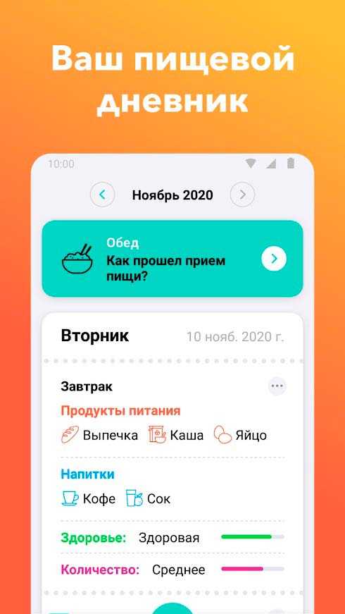 Nutrilio – это интерактивный пищевой дневник, который всегда у вас под рукой. Откройте для себя инновационные возможности для наблюдения за здоровьем, позволяющие выбрать оптимальную диету и следить за своим телом лучшим образом. Сделайте первый шаг к отличному самочувствию и начните следить за приемами пищи, выпитой водой, состоянием организма и динамикой изменений в нем.