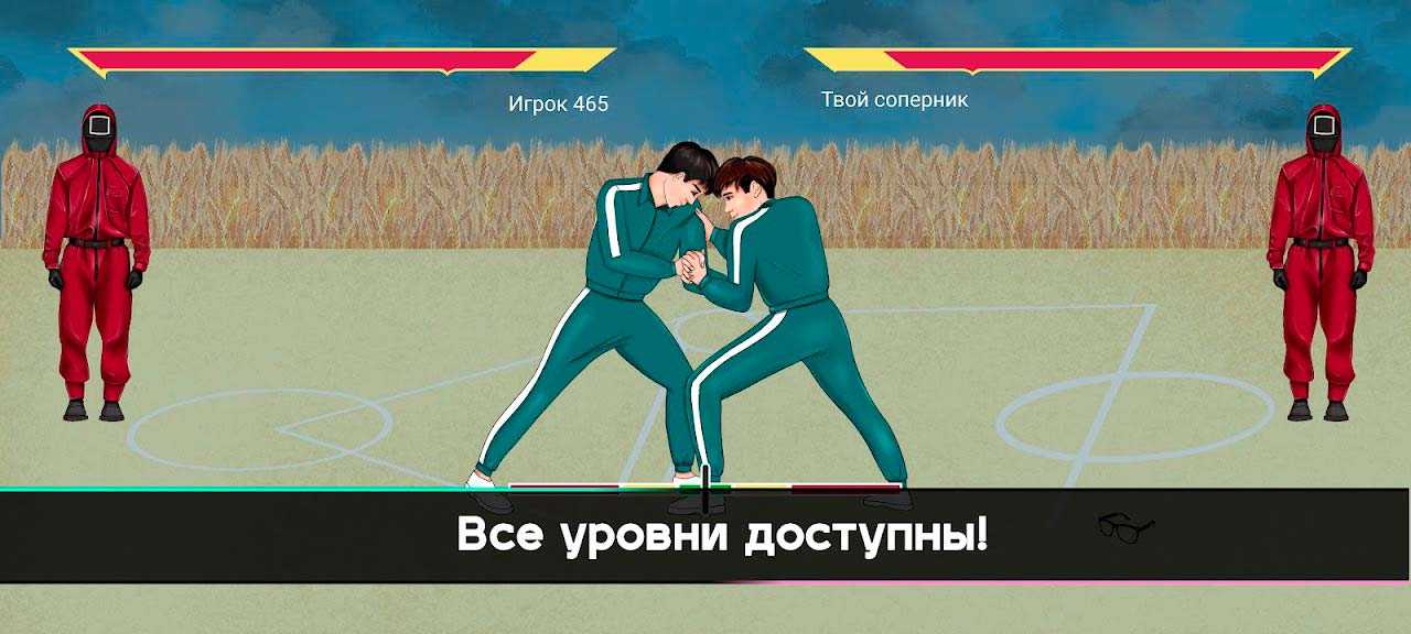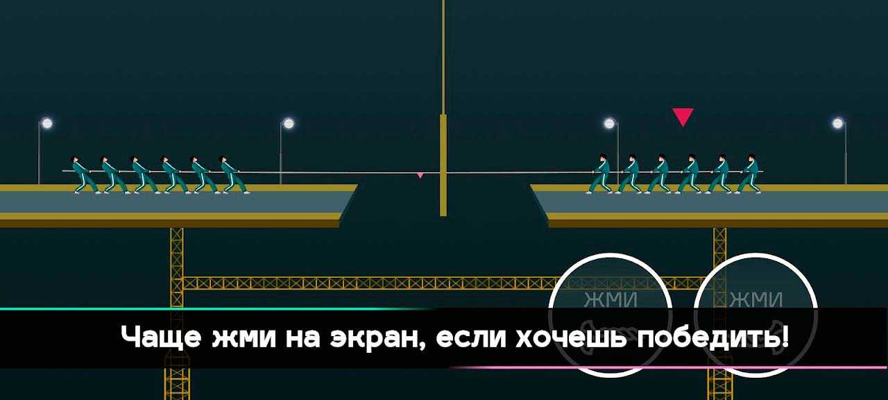 Squid Game – это легендарная игра в формате мобильного приложения у вас на экране. Тут вас ждут такие же веселые и смертельно опасные детские игры, какие были и в одноименном сериале. Попробуйте добежать до заветной линии пока поет кукла, достаньте фигуру из сахарных сот в целости, пройдите по стеклянному мосту, поучаствуйте в перетягивании каната и выиграйте шарики у соперника.