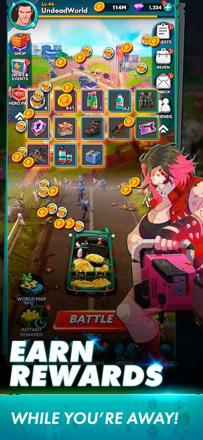 Undead World: Hero Survival – это эпичная ролевая игра с кучей легендарных героев и просторным красочным миром. Подбирайте лучших персонажей в свой отряд, чтобы создать могучую команду, способную одолеть любого противника. Исследуйте пустоши, полные разных опасностей, собирайте бриллианты и развивайте героев. Орды бродячих зомби станут настоящим испытанием для вашего игрового мастерства, так что приготовьтесь к ожесточенным битвам.