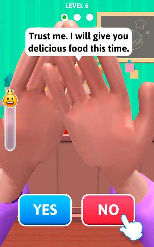 Да или Нет?! – это забавные пранки про еду с простым управлением и кучей веселья. Представьте, что вы на свидании играете с девушкой в угадайку. Она закрывает глаза, а вы выбираете что ей подсунуть – какую-нибудь вкусняшку или нечто гадкое. Подшутите над барышней и посмотрите как это уморительно – настроение поднимается моментально. Присоединяйтесь к розыгрышам и наслаждайтесь отличной игрой.