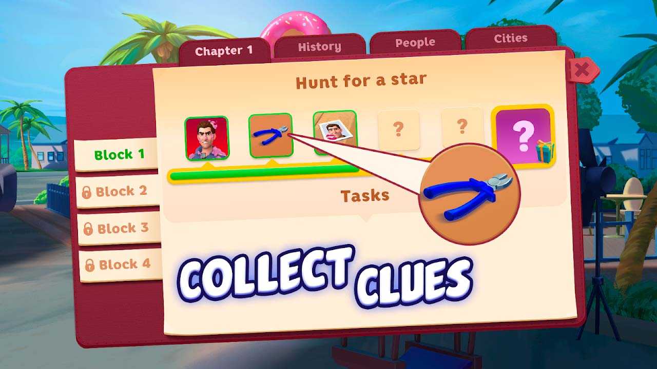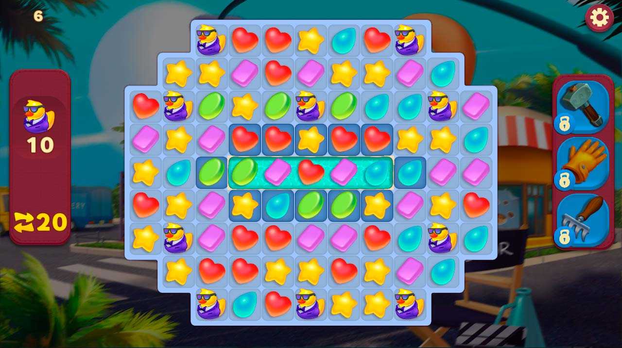 Hollywood Moments – это занимательная мобильная игра с простой механикой «три в ряд» и увлекательной историей. Тут вы окажетесь на съемочной площадке в Голливуде и сможете прочувствовать всю магию создания фильмов. Помогите милой девушке Эмме, разгадывая загадки и выполняя разнообразные задания. Проходите уровни и расследуйте запутанные дела, наслаждаясь удивительной атмосферой проекта.