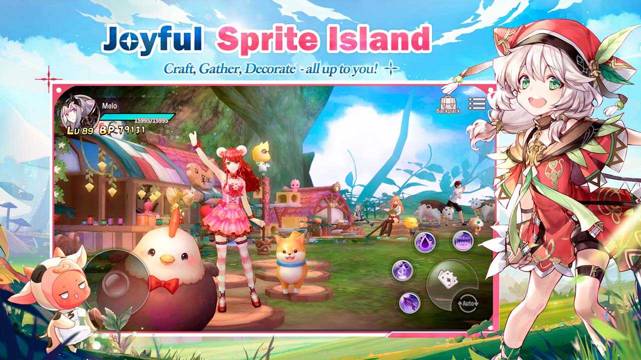 Sprite Fantasia – это новая MMORPG для мобильных платформ с большим удивительным миром. Здесь вас встретит уютная атмосфера, завораживающая с первых же минут игры. Добродушные персонажи, веселые приключения, захватывающие путешествия и красочное визуальное оформление игры подарят массу незабываемых эмоций всех ценителям жанра. Создайте команду из волшебных существ, снарядите их всем необходимым и отправляйтесь покорять это прекрасное место.