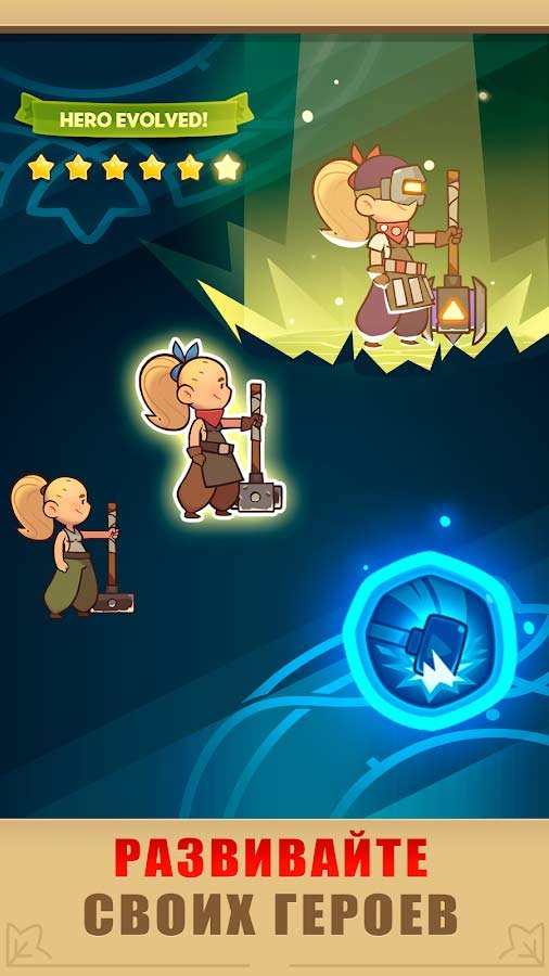 - Глобальная система прокачки и развития своих 11-ти героев;