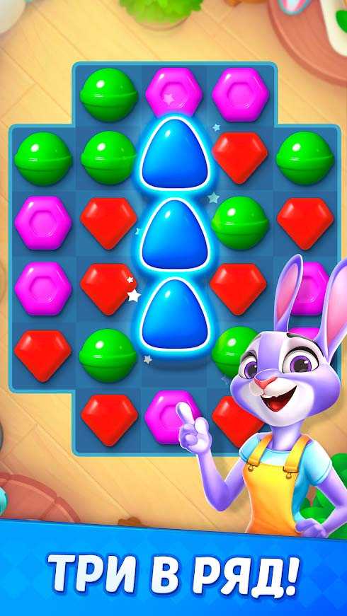 Конфеты: Три в Ряд! – это очаровательная мобильная головоломка, в которой вас ждет украшение просторного дома. Собирайте яркие конфеты, разгадывайте занимательные загадки и отдыхайте за приятной игрой. Проходите все больше уровней, оттачивая мастерство и открывая новые игровые особенности. На сложных уровнях всегда можно воспользоваться подсказкой, так что проблем с механикой приложения не должно возникнуть даже у начинающих игроков.