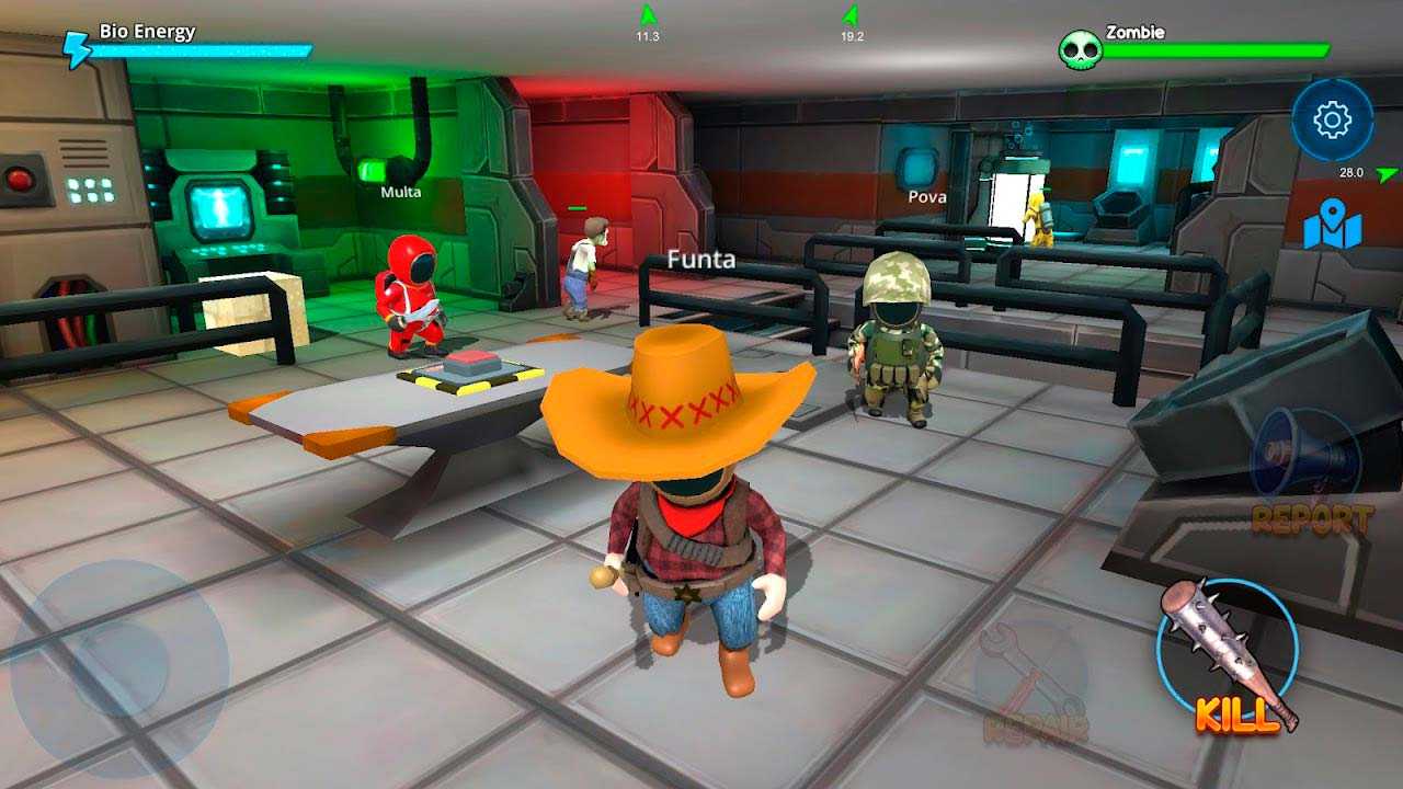 Impostor – это увлекательная мобильная игра про самозванцев, где вас ждет немало интересных раундов. В каком-то тайном месте на карте предатель заложил бомбу, и чтобы остаться в живых у вас есть несколько выходов: попробуйте ее обезвредить, убейте всех зомби или разоблачите самозванца. Такая механика знакома многим современным геймерам по другим играм этого жанра, а для новичков в ней не будет ничего сложного.