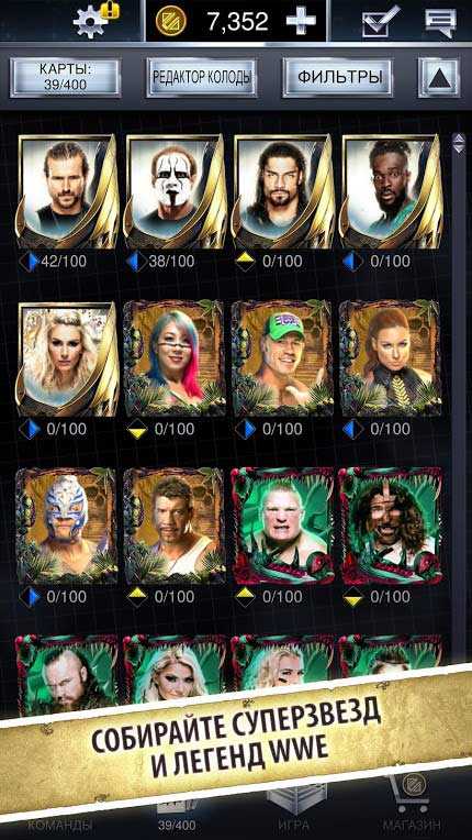 Можете попробовать скачать WWE SuperCard – Сетевая карточная игра на андроид и тогда вам станет доступно огромное количество возможностей: