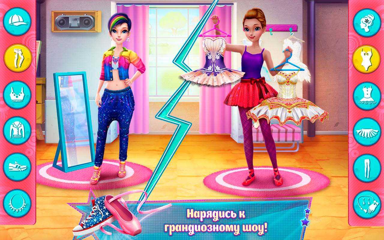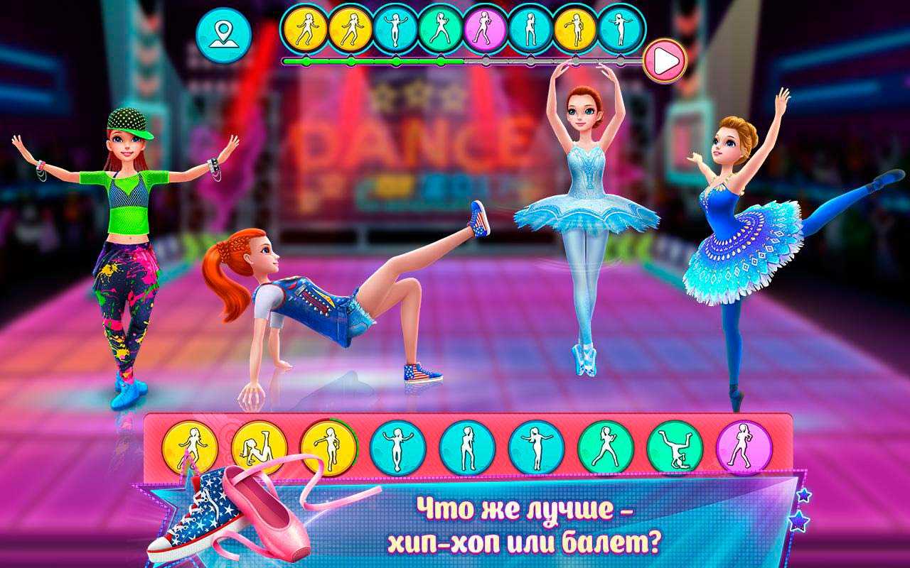 Битва танцев: Балет vs хип-хоп – это веселое музыкальное приключение, где в эпичном противостоянии сойдутся совсем разные виды танцев. Балет против хип-хопа, грациозность против крутости и такая разная музыка. Опробуйте себя в роли постановщика танцев, а заодно костюмера и стилиста, создавая удивительное шоу для любого возраста. Ведите свою команду к успеху, поднимаясь вверх по рейтинговой таблице, чтобы стать настоящими чемпионами танцев.