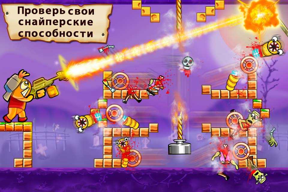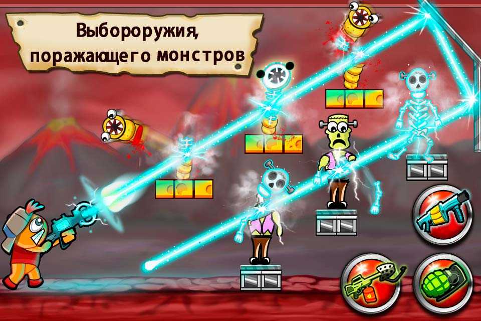 Кровавые монстры – это забавная стрелялка на экране вашего телефона, в которой вас ждет масштабная война с зомби. Тут повсюду бродит куча страшных монстров, так что хватайте любое оружие и принимайтесь уничтожать их. Боезапас ограничен, но пули могут отскакивать от некоторых объектов – осталось лишь выбрать верную траекторию и сделать точный выстрел. Десятки уровней и монстров станут отличным испытанием для любого бойца.