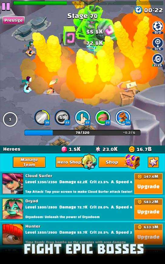 AFK Quest – это захватывающая ролевая игра в офлайн режиме, отправляющая вас в яркий фантастический мир. Тут собрано множество могучих героев, разнообразных артефактов, жутких монстров и море магии. Создавайте уникальную армию, выбирайте улучшения, развивайте навыки и побеждайте эпичных боссов ради славных наград. Лишь самые смелые и отважные воители смогут добиться успеха в этом удивительном виртуальном мире, так станьте же одним из них.