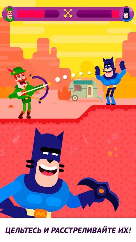 Bowmasters – это забавный мобильный экшен, в котором вас ждут динамичные боя ярких персонажей. Выбирайте себе героя, режим игры и воюйте с игроками со всего мира. Стрелять тут очень просто, с управлением разберется даже ребенок. Большой выбор оружия, яркая графика и незабываемые баталии подарят вам уйму положительных эмоций и всегда помогут скоротать время. Побеждайте противников и получайте уникальные награды.