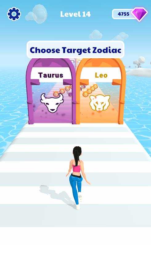 Zodiac Runner! – это увлекательный мобильный раннер, который точно понравится всем любителям гороскопов. Выбирайте знак зодиака и двигайтесь вперед, попадая в нужные ворота. По завершению уровня вы сможете узнать о совместимости выбранных знаков. Тут вы получите много интересной астрологической информации, так что внимательнее проходите уровни и просто наслаждайтесь отличной мобильной игрой.
