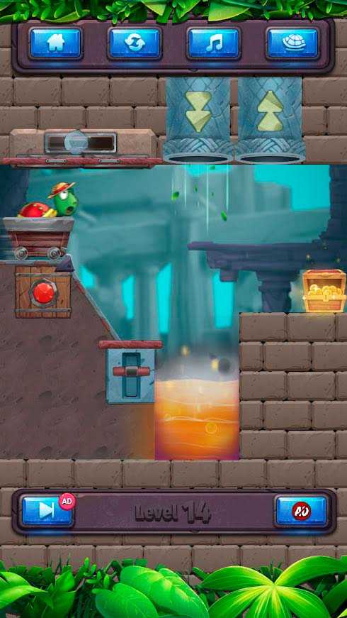 Turtle Puzzle – это забавная мобильная головоломка, в которой вы будете помогать черепахе искать золото. Двигайте животное, нажимайте рычаги, перемещайте платформы и задействуйте другие доступные объекты. Здесь играть может каждый – правила очень простые, и даже новичок в подобных играх быстро разберется. Сотни уровней с регулярными обновлениями и дополнениями порадуют вас и всегда помогут скоротать время.