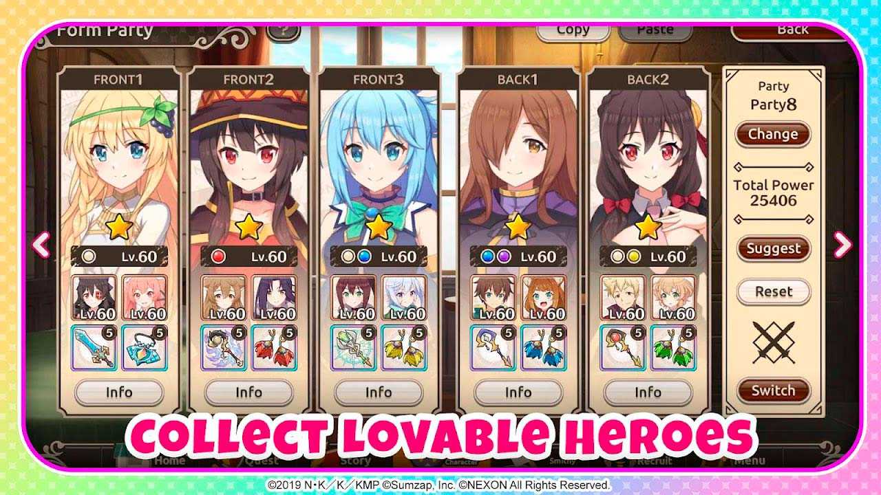 KonoSuba: Fantastic Days – это удивительная ролевая игра в стиле аниме, переносящая вас в дивный фантастический мир. Окунитесь в опасное, но крайне увлекательное приключение, пытаясь спасти эту сказочную вселенную от нападения Короля-дьявола. Команда очаровательных героинь готова к великим свершениям, они ждут ваших приказов, так что пора отправляться в бой. Шикарная графика, высококлассная озвучка, колоритные персонажи, затягивающая с первых же минут сюжетная линия и многие другие особенности проекта подарят вам уйму положительных эмоций и хорошее настроение в любой день.