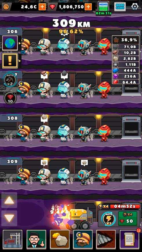 Пещера Бурильщик – это необычная казуальная игра, открывающая для всех желающих веселую добычу земных недр. Тут от вас нужно лишь достойное руководство, а шахтеры будут копать в автоматическом режиме. С помощью штата менеджеров, у каждого из которых свои сильные стороны, доведите процесс добычи руды до максимальной эффективности. Чем глубже в недрах вы окажетесь, тем ценнее полезные ископаемые найдете, так что старайтесь докопаться до самых злачных глубин.