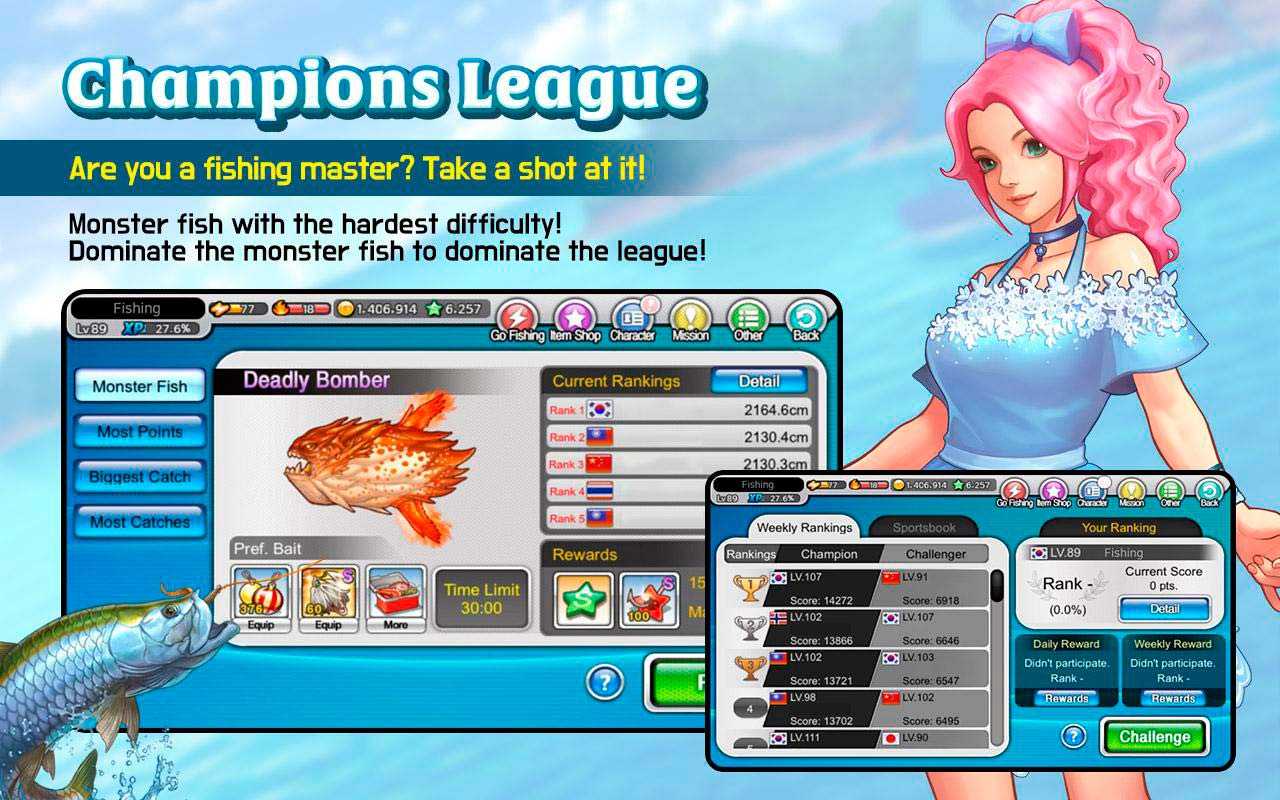 Fishing Superstars – это классная спортивная рыбалка, в которой вас ждут очаровательные герои и шикарное оформление в стиле аниме. Врывайтесь в лигу чемпионов и покорите фанатов рыбной ловли своими умениями. Ожесточенные соревнования ждут от вас серьезных усилий, ведь только лучшие смогут поймать крупную рыбу и завоевать признание. Покупайте редкие удочки, оборудуйте их по последнему слову техники и начинайте свою великую рыбалку.