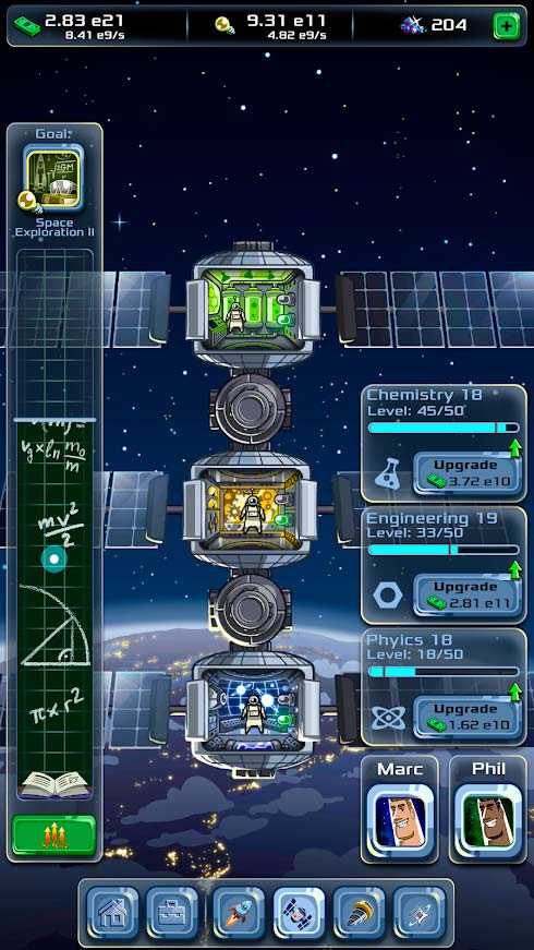 Idle Tycoon: Space Company – это удивительные космические приключения в формате удобной мобильной игры. Тут вам предстоит возглавить крупную компанию, занимающуюся торговлей в космосе. В нашей вселенной есть масса всего интересного для исследований, так что не стоит медлить – собирайте команду астронавтов и отправляйтесь ее покорять. Стройте форпосты на разных планетах, воздвигайте научные станции, занимайтесь изучением новых технологий и делайте все, чтобы повысить доходы. Инвестируйте в новые разработки и летите все дальше к звездам.