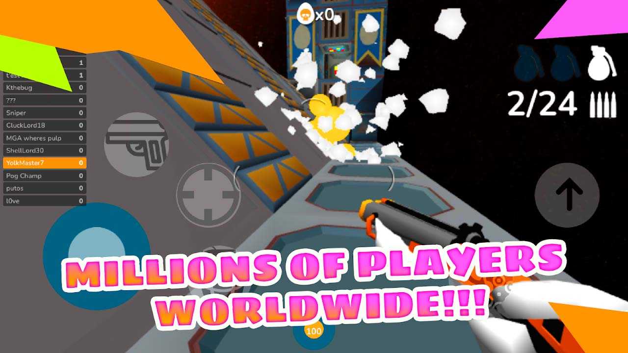 Shell Shockers – это забавный мобильный шутер, в котором вас ждут незабываемые битвы яиц. Выбирайте оружие перед битвой и отправляйтесь покорять игроков со всего мира на красочных боевых аренах. Несколько многопользовательских режимов и широкие возможности персонализации для героев делают бои яркими и запоминающимися. Опробуйте каждый вид баталий и покажите свое мастерство. Воевать тут весело и увлекательно, всем ценителям жанра явно понравится.Информация об игре