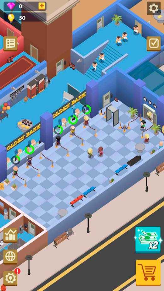 Idle Bank – это увлекательный симулятор банка, в котором вы возглавите руководство крупным филиалом финансовой организации. Займитесь обслуживанием клиентов, отвечайте на их вопросы, принимайте вклады, выдавайте кредиты и так далее. Ведите свой банк к процветанию, развивая его и помогая все большему количеству людей. Игровой процесс не составит труда для новичков, а достойная двухмерная графика порадует глаз всем любителям красочных мобильных приложений.