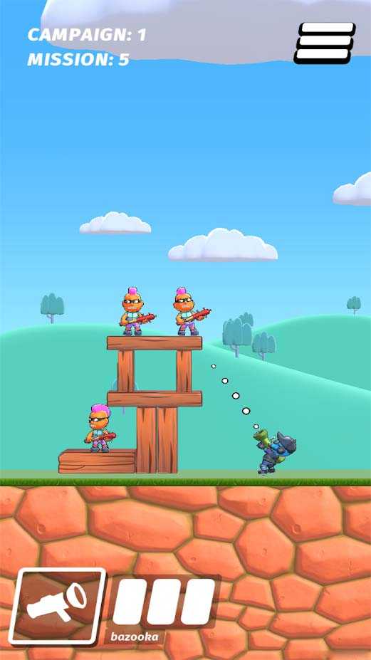 Bazooka World – это забавный мобильный экшен, где вас ждут необычные баталии. Используйте широкие возможности боевого арсенала и военные хитрости, чтобы получить превосходство в бою и одолеть всех противников. Сложность игры будет постепенно повышаться, так что приготовьтесь к суровым испытаниям. Несколько затейливых компаний, взрывные спецэффекты, интуитивно понятное управление и другие особенности проекта подарят вам незабываемые эмоции.Информация об игре