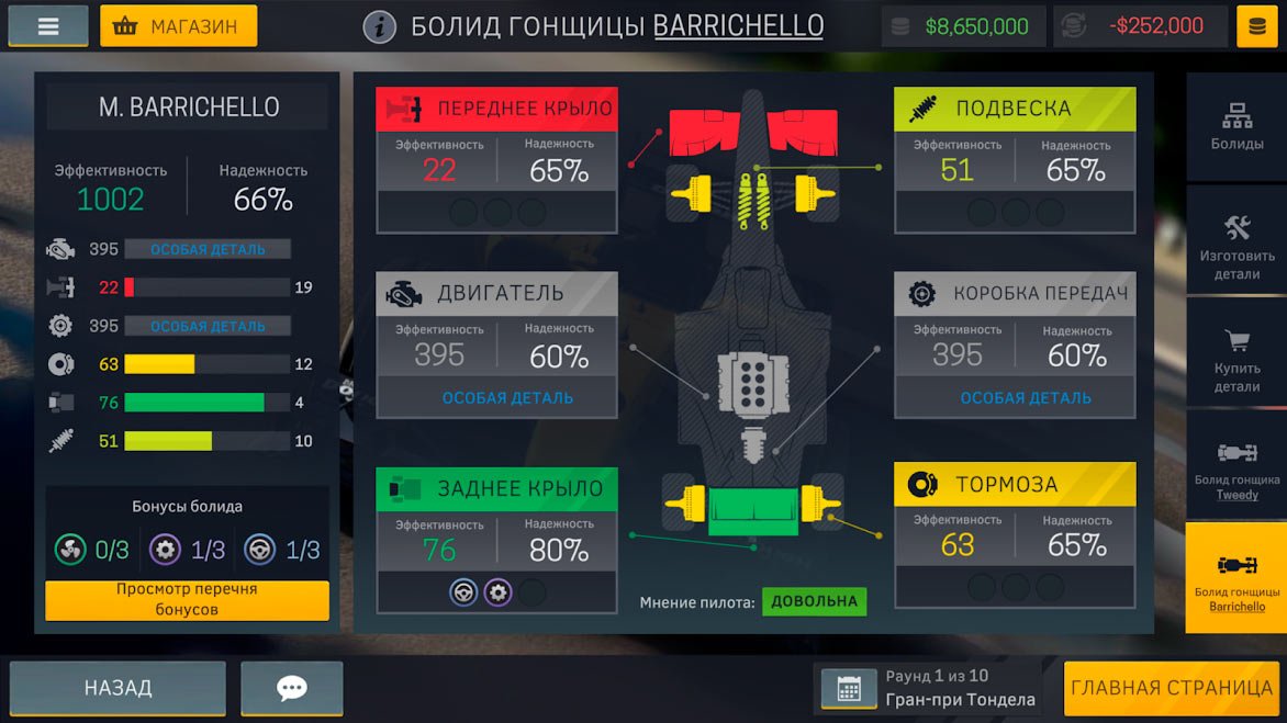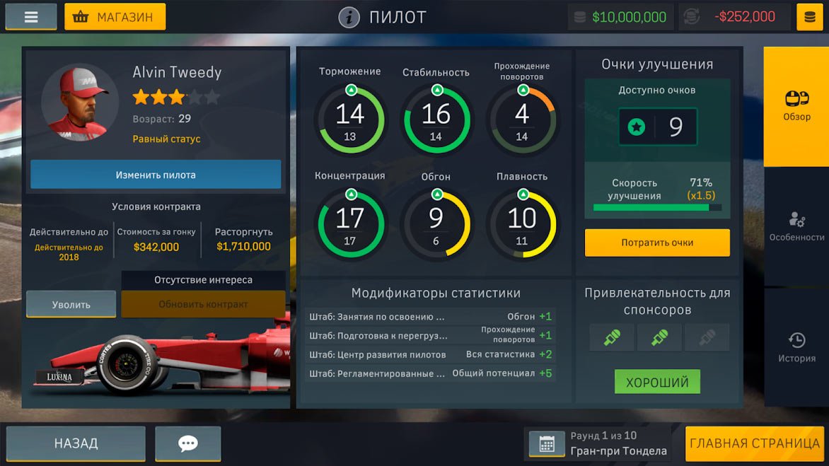 - Большое количество дополнительных параметров и элементов, чтобы повысить эффективность вашего автомобиля и всей команды.