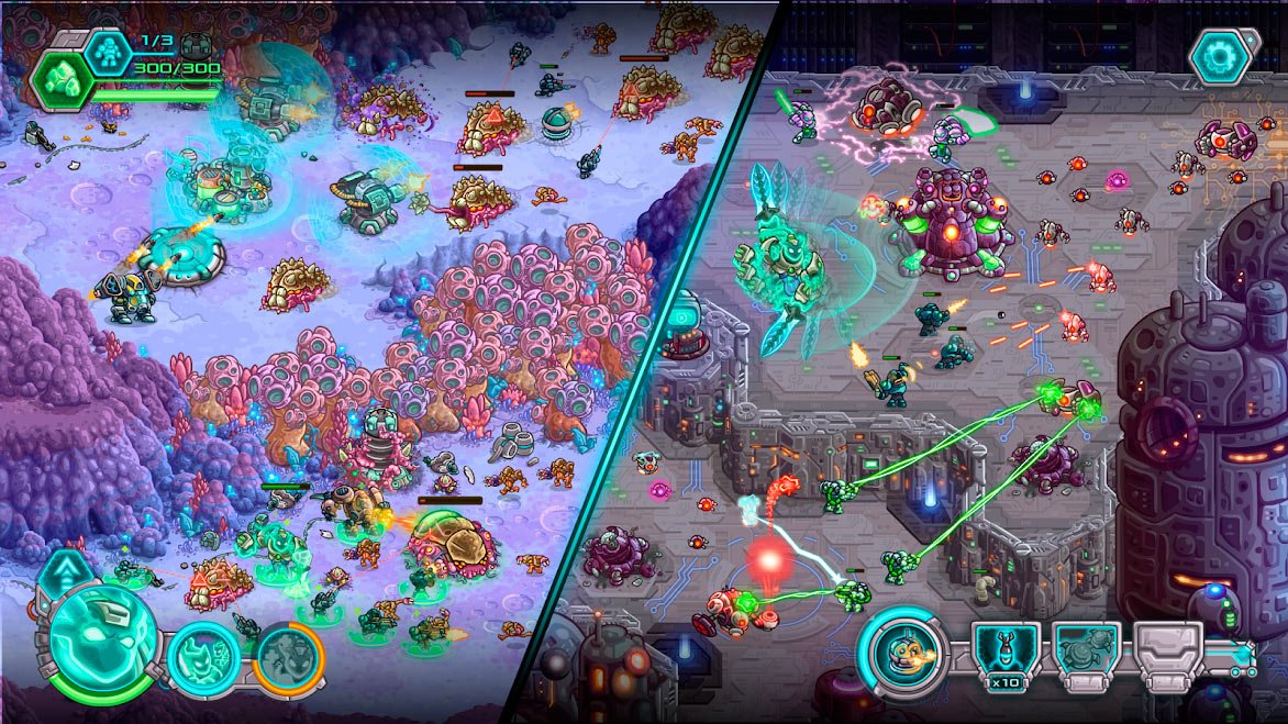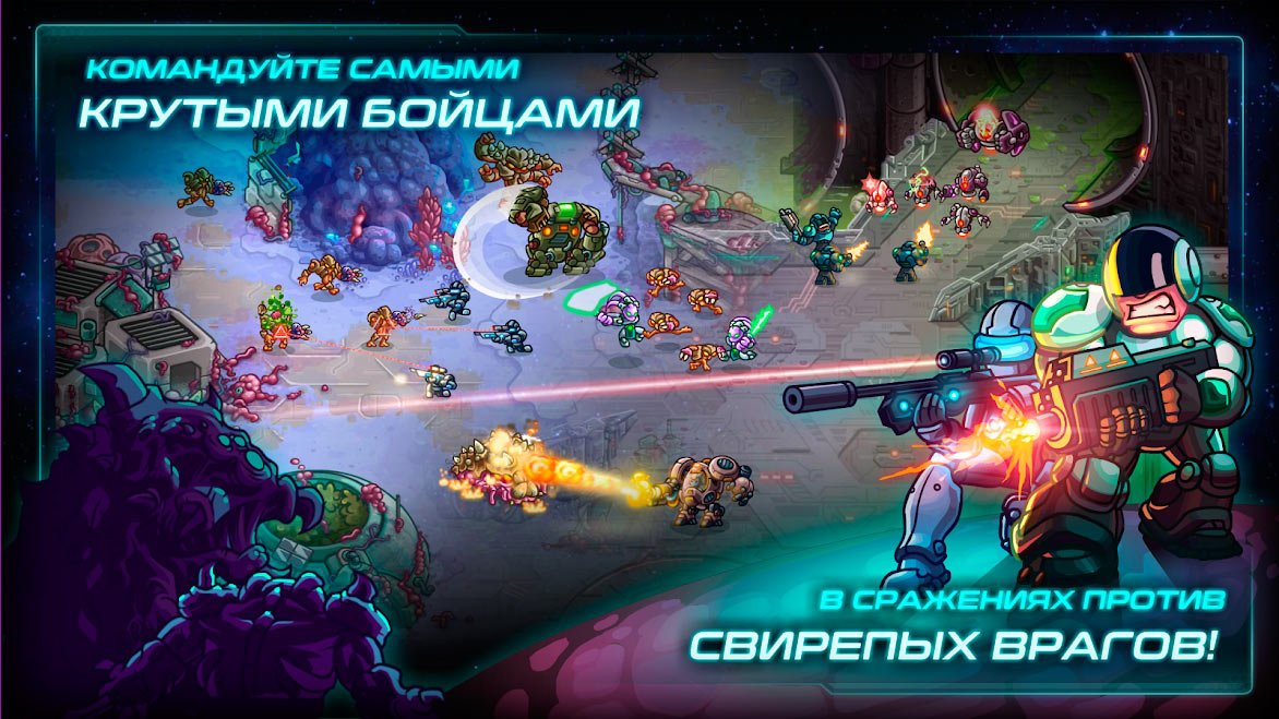 Начинайте собирать в своей команде большое количество великих воинов со всей галактики. Вы должны будете послать их на очень сложные операции, где они полностью раскроют свой боевой потенциал. Оснащайте собственную армию большим количеством мощного вооружения среди ракетниц, пулеметов и огнеметов. Вы можете запросто изменить ход битвы, выбрав правильное направление. Расставьте по всему периметру установки с ракетами и турелями, чтобы организовать защиту собственной базе. Больше 14-ти разных по сюжетной линии компаний будет доступно игроку в этих увлекательных приключениях.
