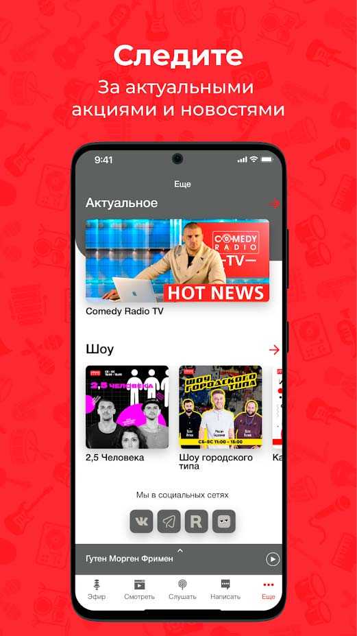 Comedy Radio – это обновленная версия радио с измененным дизайном и расширенным функционалом. Здесь вас всегда ждет лучшая музыка и отличное настроение. Программа работает в фоновом режиме и доступна когда вам удобно. Команда КамедиКлаб давно дарит людям положительные эмоции. Присоединяйтесь к обширному тематическому сообществу и скучать вам точно не придется.