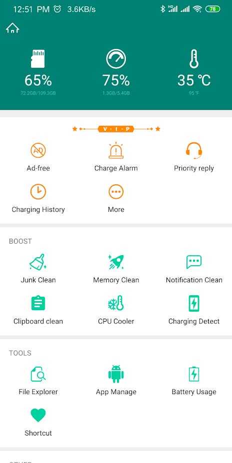 Быстрая зарядка – это весьма полезное приложение для оптимизации процесса зарядки мобильного телефона. Оно уменьшает яркость экрана и снижает расход энергии устройством. Также программа направляет пользователю уведомления об излишнем энергопотреблении от других приложений. Во избежание перегрева телефона тут можно отслеживать температурный режим. Так вы всегда будете в курсе состояния мощности вашего гаджета, что очень удобно.
