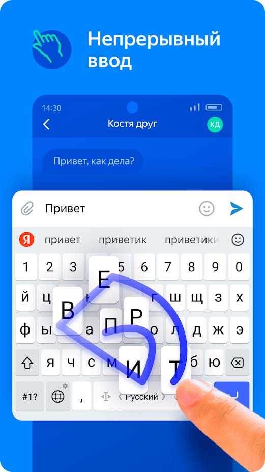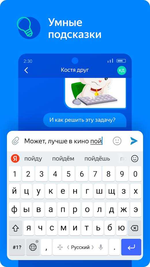 Яндекс Клавиатура – это классная виртуальная клавиатура с множеством полезных функций. Система встроенных умных подсказок поможет начинающим пользователям во всем разобраться, а опция автоисправления убережет вас от многих ошибок при печати. Конструктор тем позволяет настроить интерфейс программы под себя, чтобы работать в ней было еще комфортнее. Пользуйтесь функциями непрерывного и голосового ввода, вставляйте разнообразные эмодзи и стикеры, оцените опции перевода и поисковика – и это лишь часть из широкого функционала программы.