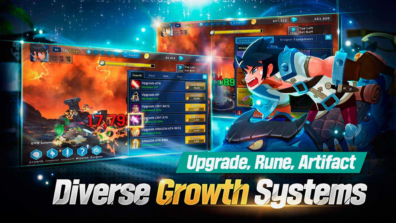 Dragon Knights Idle – это увлекательные приключения драконьего рыцаря. Призывайте могучего дракона и уничтожайте своих врагов его огненным дыханием. В драконьих яйцах вы найдете самые лучшие предметы. По темным подземельям бродит множество кровожадных монстров, так что приготовьтесь к серьезным испытаниям. Усиливайте рыцаря с помощью снаряжения и рун, чтобы победить самых опасных боссов и подняться на верхние места лидерской таблицы.