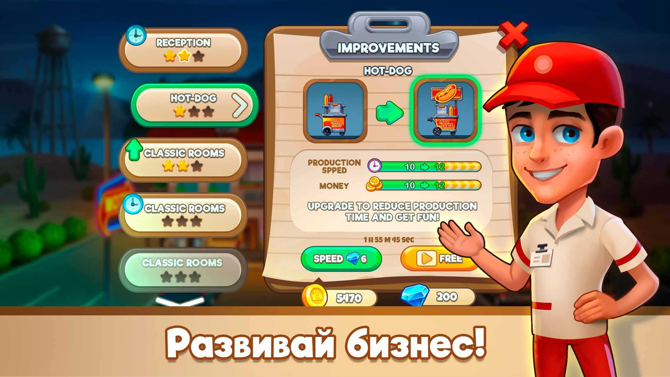 Doorman story – это уютный мобильный симулятор управления придорожным отелем. Начните с самых основ, развивая небольшое заведение и превращая его в шикарную гостиницу. Займитесь руководством, следите за персоналом и старайтесь выполнить каприз каждого клиента. Получайте доход и улучшайте качество обслуживания, заказывайте новое оборудование и выводите свой отель на высший уровень. Так вы уже скоро станете управлять роскошным гранд-отелем мирового класса.