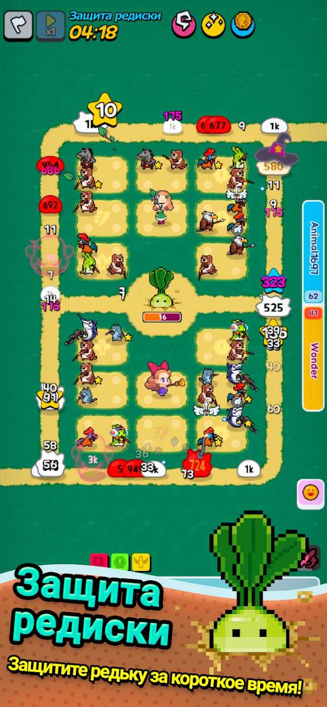 33RD: Случайная защита – это увлекательные мобильные бои с множеством уровней и разнообразными режимами. Собирайте уникальную команду и вступайте в сражения. Животные, волшебники, монстры и другие участники игровой арены готовы к вашим приказам. Покажите свои силы в одиночной игре, воюйте в режиме дуэли или веселитесь вместе с другими игроками. Большой выбор юнитов, красочная графика, простое управление и остальные особенности проекта подарят вам уйму положительных эмоций и всегда помогут скоротать время.