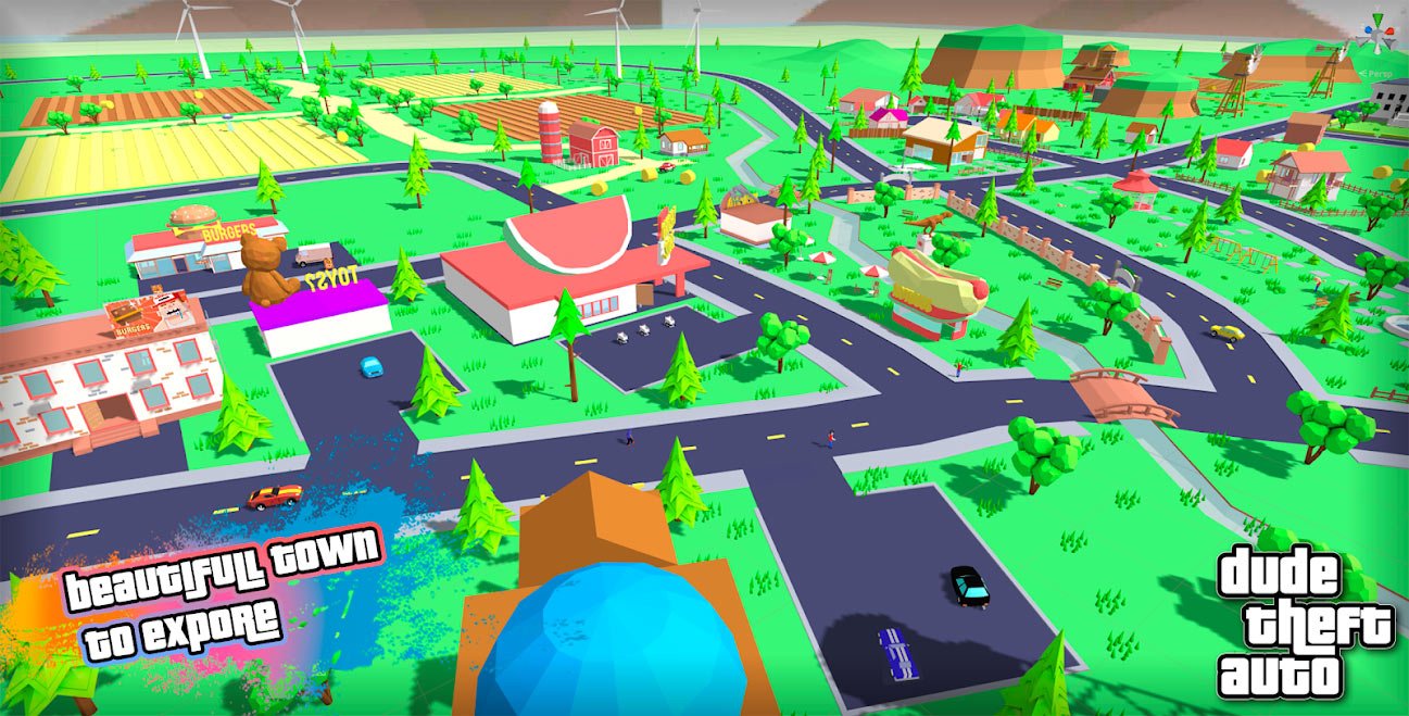 Dude Theft Auto – это уникальная современная игра для мобильных устройств, выполненная в стилистике легендарной GTA. Здесь вас также ждет огромный открытый город, наполненный многочисленными жителями, кучей крутых тачек, кровожадных банд, увлекательных заданий и еще массой уникальных элементов. Отправляйтесь в захватывающее приключение, в котором вы вольны заниматься всем, чем угодно. Сюжетная линия в игре присутствует, и она весьма интересна, но для получения наслаждения от игрового процесса выполнять все ее задания совсем не обязательно. Тут можно просто весело кататься на стильных автомобилях, участвовать в перестрелках или прогуливаться по городу в поисках проблем на свою голову или головы других его обитателей.