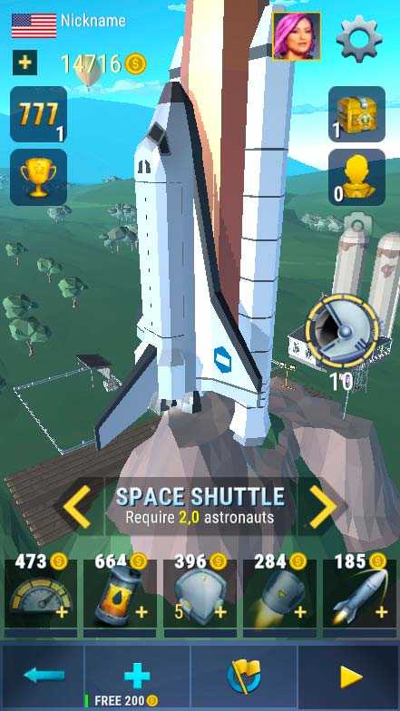 Space rocket master – это крутая научно-фантастическая игра, которая явно понравится всем любителям космоса. Приготовьтесь к захватывающим полетам с отличной анимацией и звуковыми эффектами. Станьте космическим магнатом и подготовьте ракету к запуску. На каждом новом уровне вас ждут разнообразные препятствия. Улучшайте свои шаттлы, чтобы справляться с любыми трудностями на пути и удачно завершать миссии. Время великих полетов и открытий пришло!