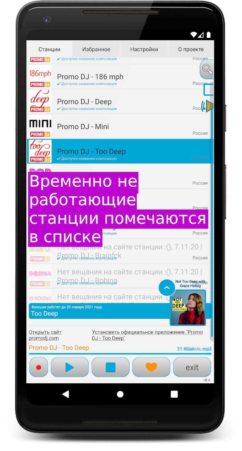 Просто Радио онлайн – это сборник ваших любимых радиостанций в интерактивном формате с большим количеством удобных функций. Здесь вы найдете самые популярные волны на любой вкус. Отсутствие рекламы выступает огромным преимуществом. На многих станциях можно выбрать отображение информации о играющих песнях. Настраивайте станции как вам понравится, помечайте их для быстрого поиска. Приложение может работать в фоновом режиме и практически не грузит систему.