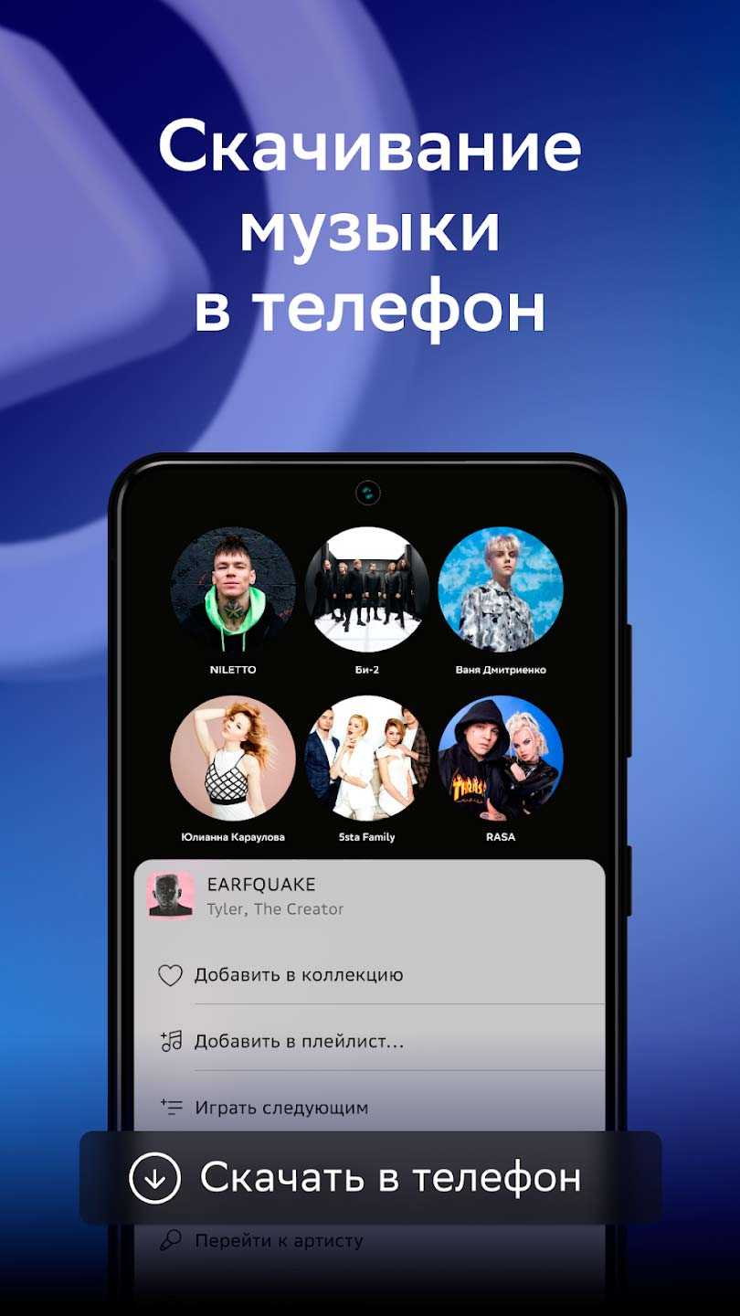 Звук. Музыка и подкасты – это простая и удобная программа для скачивания музыки, которая всегда под рукой. Теперь вы можете заниматься своими делами под любимую музыку. Десятки миллионов треков и подкастов открывают большие возможности для поиска – выбирайте среди всего этого разнообразия и наслаждайтесь отличным плеером. С помощью виртуального ассистента вы всегда сможете распознать музыку вокруг и получить всю необходимую информацию про артистов. Оцените новый формат аудиовещания, настроив поток как вам нравится.