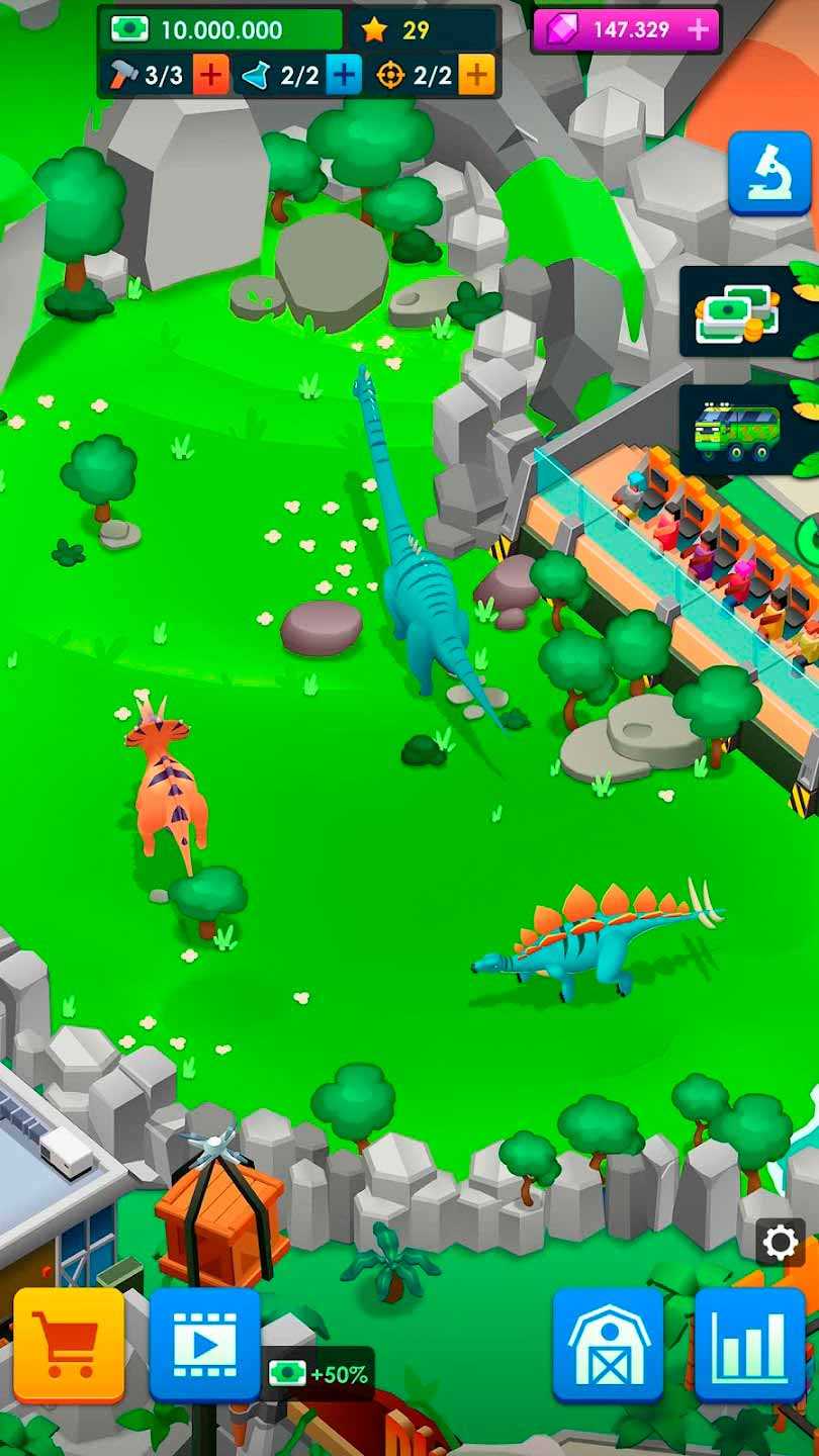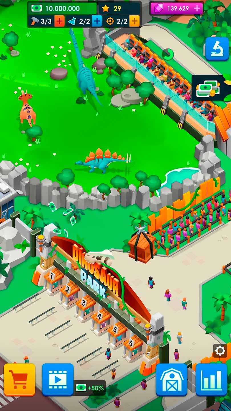Dinosaur Park – это ваш личный интерактивный парк юрского периода в формате удобного мобильного приложения. Тут можно построить огромную империю с кучей доисторических животных, организовав уникальный развлекательный бизнес. На таинственном острове обитают самые разные виды динозавров – отправляйтесь исследовать его и добудьте наиболее редкие из них, чтобы впечатлить клиентов парка. Следите за животными, устройте им комфортные места обитания, кормите вкусной и полезной едой – тогда их радостный вид привлечет еще больше посетителей.