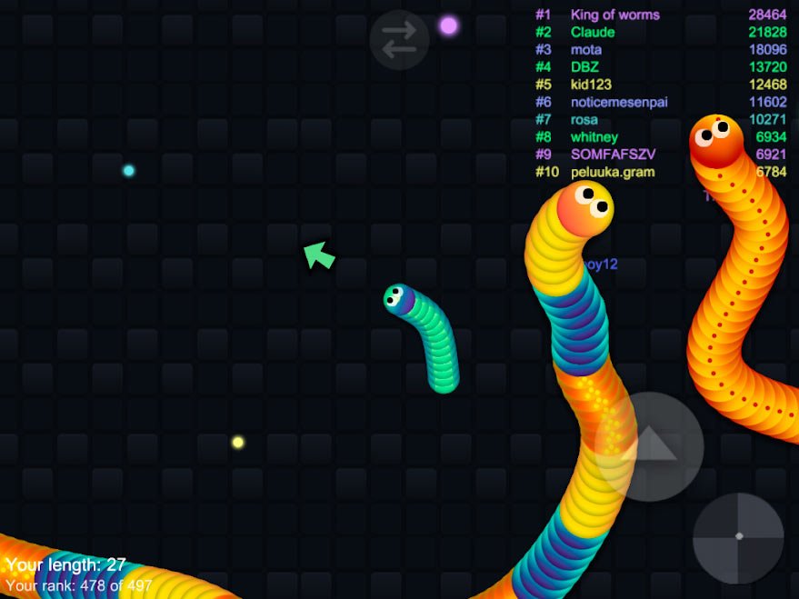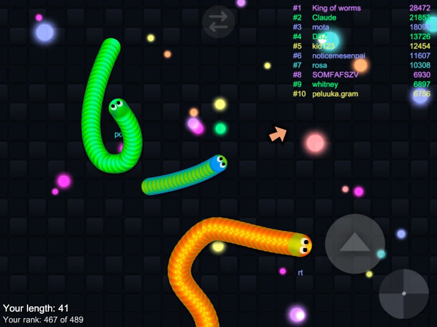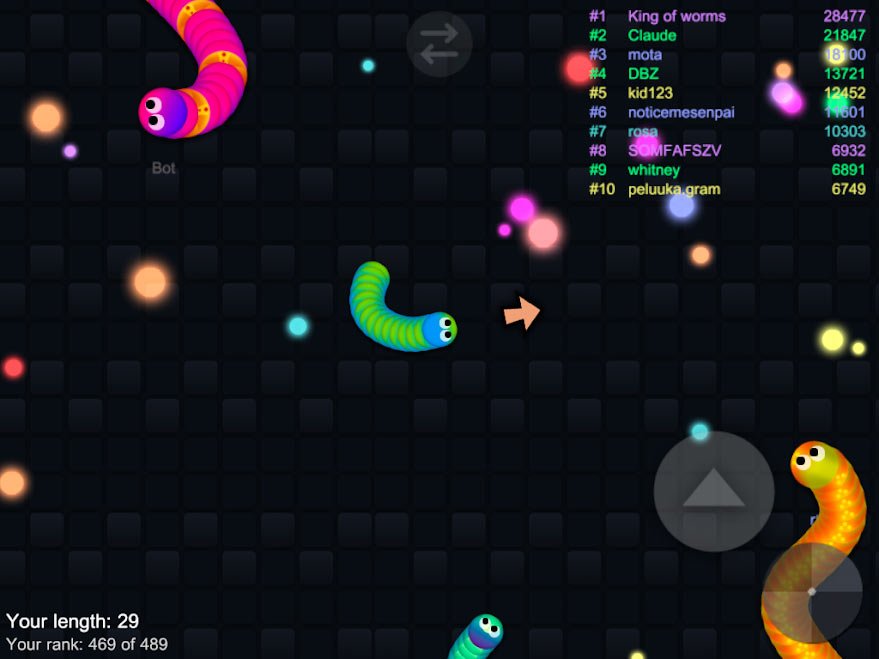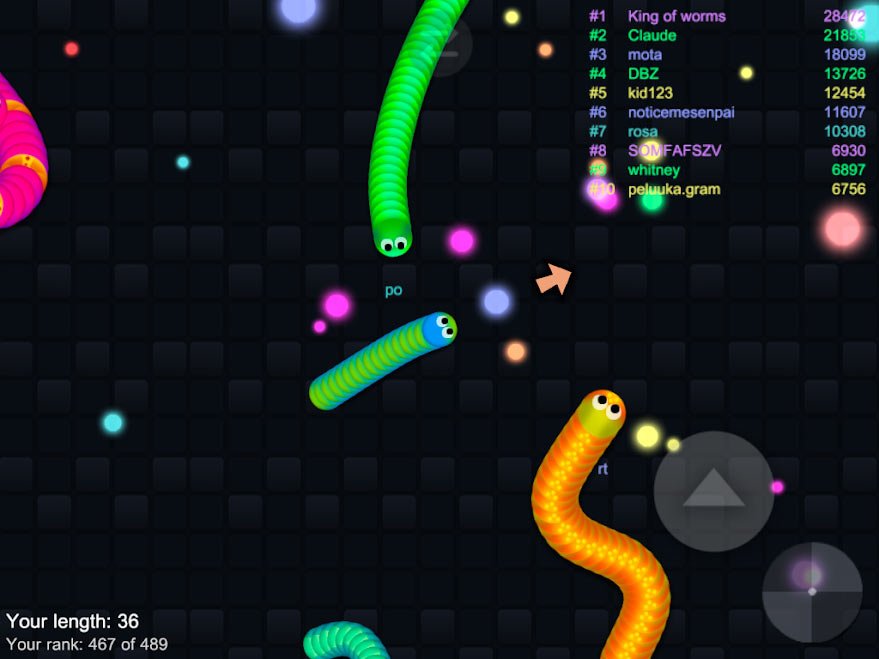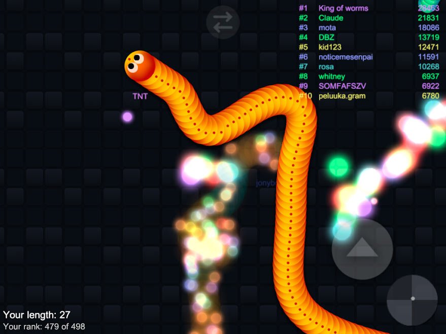 Если вы случайно прикоснетесь к более крупной змее, то вас просто разорвет на мелкие части, а остальные участники этой игры прибегут чтобы вас съесть. Маневрируйте по этой масштабной карте вместе с игроками онлайн и старайтесь не попадаться крупным участникам игры. Игрок может использовать атаку только на тех змей, которые меньше его в длине. Если будете испуганы огромной змеей, тогда выбирайте ускорение и быстрее сматывайтесь. Кусайте соперников только за хвосты, потому что с этой части тела змейка начинает разделять по частичкам. Наслаждайтесь глубиной простой змейки и ее оригинальным многопользовательским режимом.