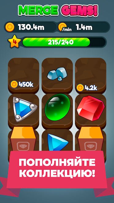 Решившись скачать Merge Gems! На андроид будете получать огромное количество особенностей, а от них удовольствие: