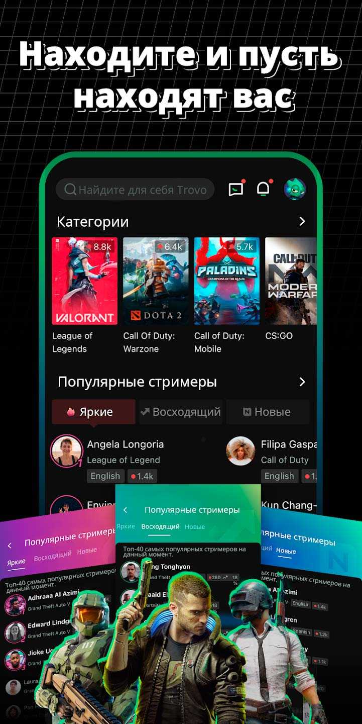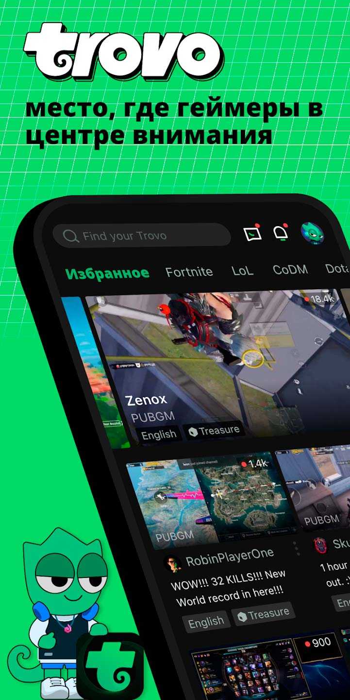 Trovo – это уникальная интерактивная платформа, на которой вы всегда найдете свою аудиторию. Выходите на новый уровень общения, ведите прямые трансляции, получайте драгоценные камни и сундуки с сокровищами. Здесь вы совсем по-другому взгляните на потоковое вещание как в режиме реального времени, так и офлайн. Каждый стример найдет тут много полезного и интересного, независимо от уровня своего профессионализма. Вместе с другими участниками проекта вы формируете платформу, в которой заинтересованы – оценивайте ее особенности и меняйте как захотите. С такими мобильными инструментами скучать вам не придется.