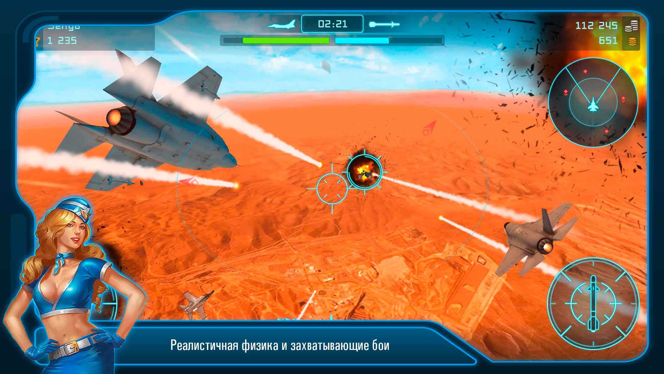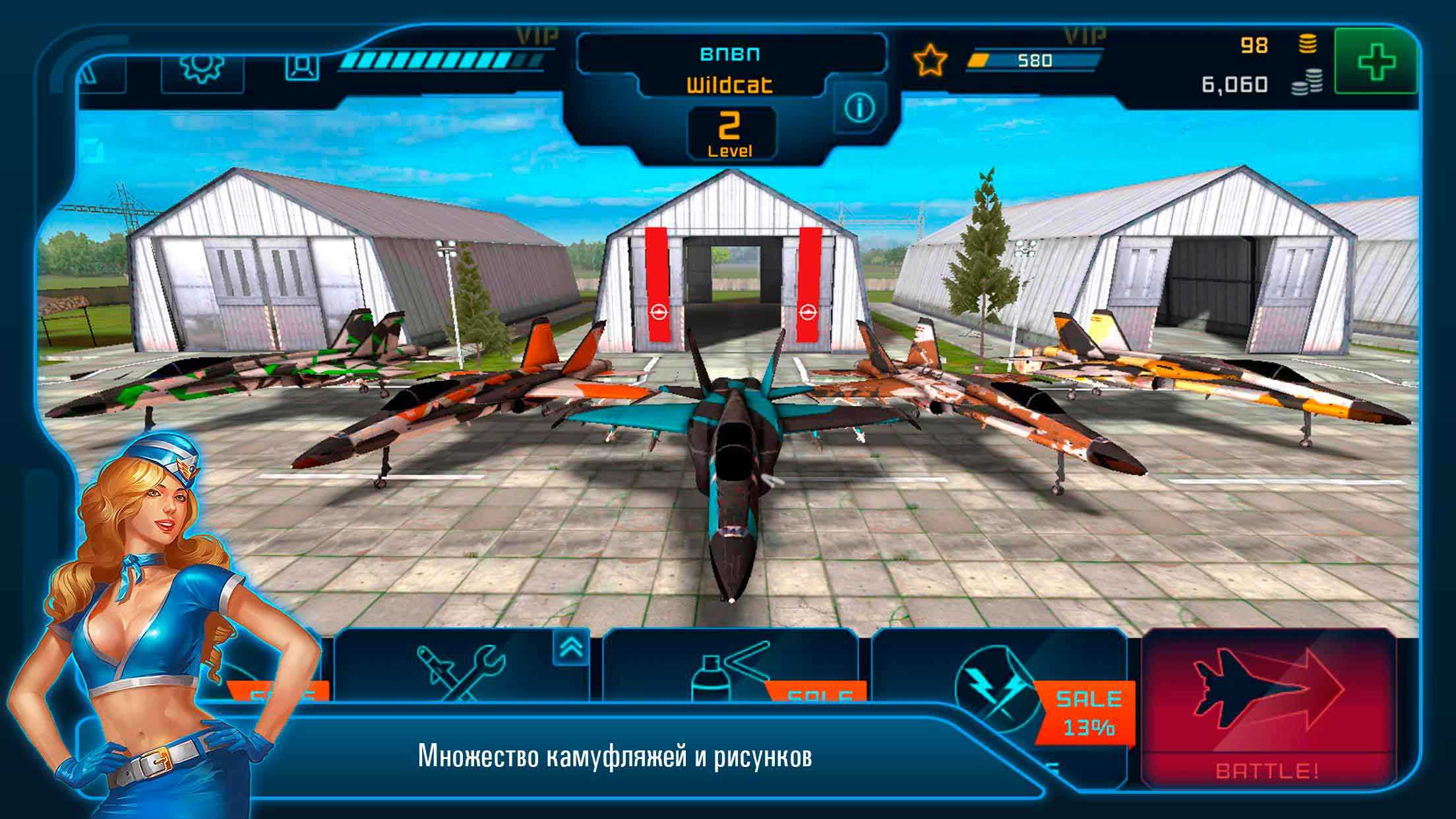 Battle of Warplanes – это крутой мобильный симулятор воздушных боев с потрясающей графикой и незабываемыми спецэффектами. Такое визуальное оформление вы могли видеть только на ПК, так что приготовьтесь к удивлению. Здесь пилоты со всего мира готовы составить вам компанию и нешуточную конкуренцию, так что больше тренируйтесь и оттачивайте летательные навыки. Боевые самолеты нескольких типов ждут своих верных пилотов – садитесь за штурвал и летите навстречу опасностям.