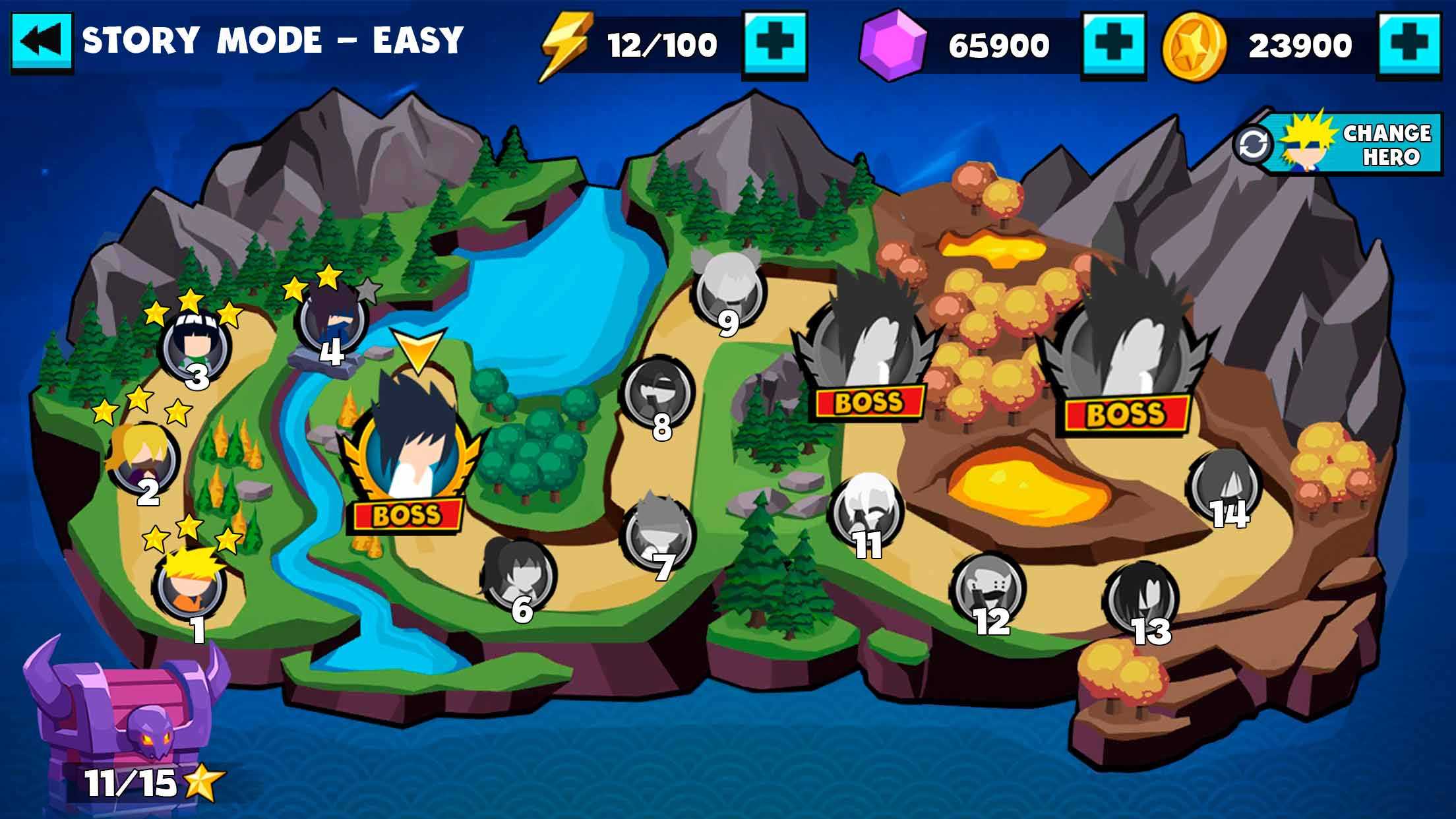 Stickman Shinobi Fighting – это новая игра из серии стикменов, выполненная в стиле аниме. Здесь вас встретят персонажи популярной манги на нескольких боевых этапах. Большое разнообразие карт с боссами в конце каждой из них станет отличным испытанием для всех ценителей жанра. Оттачивайте свое боевое мастерство, двигайтесь все дальше по сюжетной линии и уже скоро вы станете истинным мастером шиноби. Все больше ниндзя и эпичных баталий ждет вас тут с каждым новым игровым часом, так что приготовьтесь – скучать явно не придется. И помните, чем выше сложность – ты выше и награды.