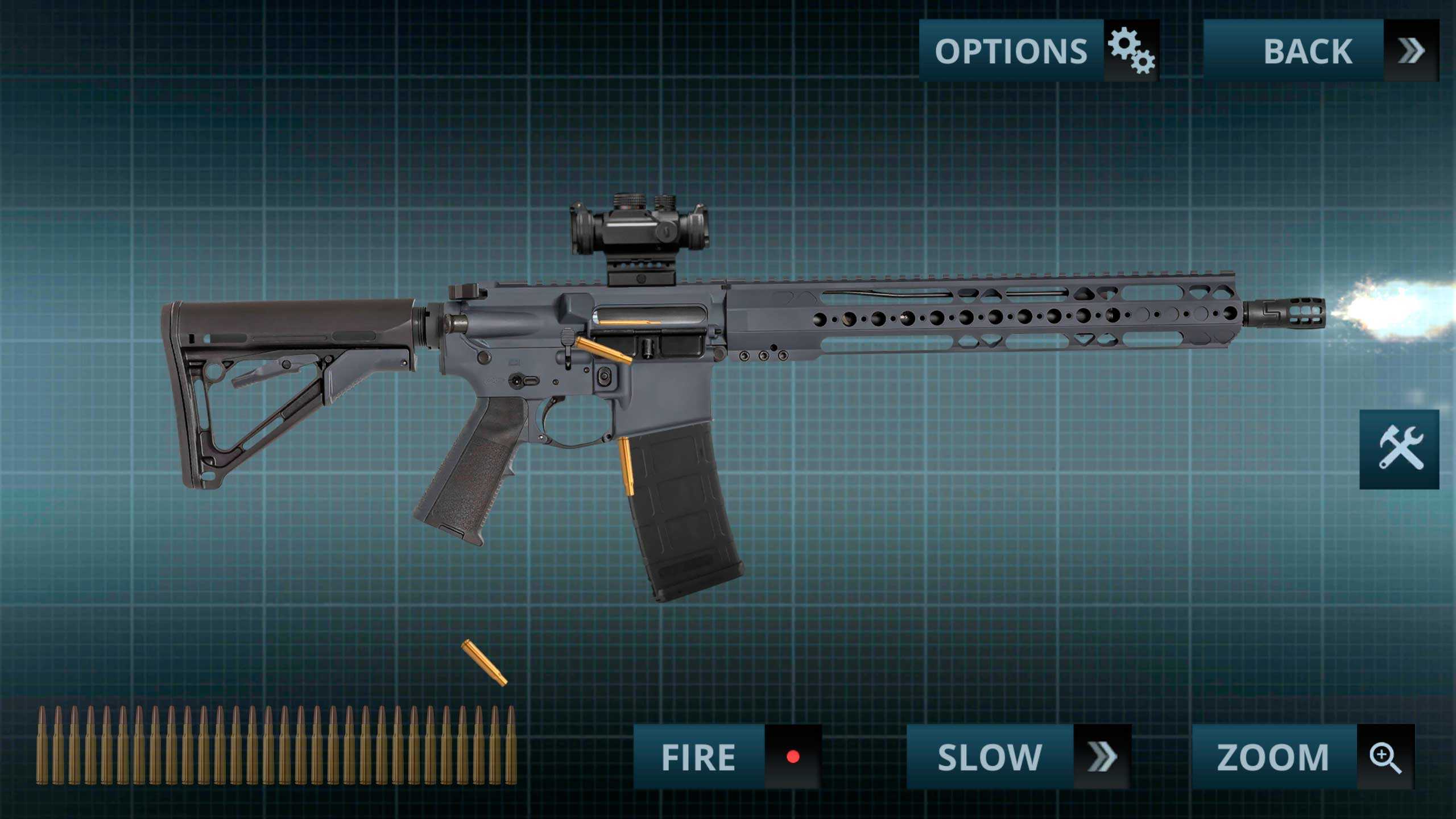 Ultimate Weapon Simulator – это уникальная интерактивная коллекция оружия в формате удобного мобильного приложения. Здесь все максимально просто – выбирайте желанное вооружение и жмите на курок. В итоге вы услышите как оно звучит и что происходит после выстрела. Все эффекты выполнены весьма реалистично, так что приготовьтесь получить бурю новых эмоций. Бесконечное количество боеприпасов, замедленная съемка большой выбор пушек и сразу понятный интерфейс делают эту игру одной из лучших в своем жанре.