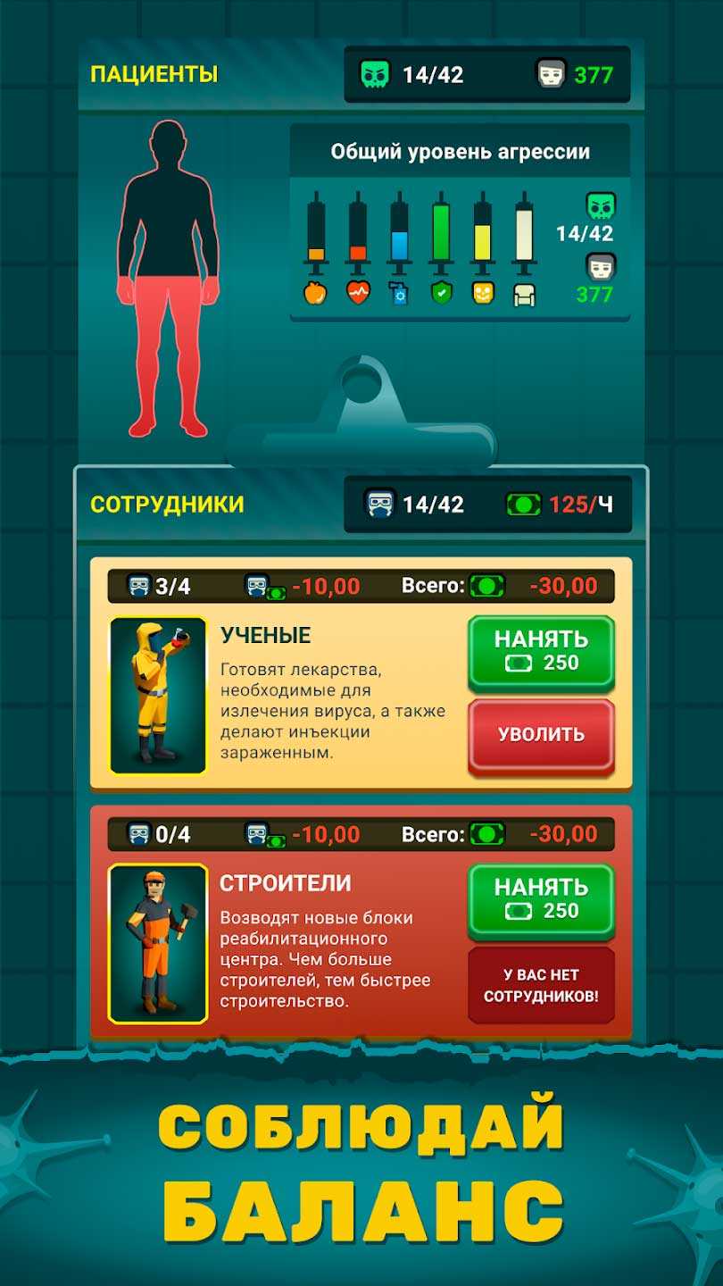 Zombie Hospital – это увлекательная мобильная игра-симулятор больницы в условиях постапокалипсиса. Мир вокруг давно изменился под влиянием смертельного вируса, но человечество выстояло и нашло способ справиться с угрозой. Теперь и зомби можно вылечить, в вашей больнице это стало реально. С такими опасными пациентами довольно сложно справиться – внимательно управляйте персоналом, стройте новые отделения больницы, улучшайте технологии, и вы быстро решите все возникающие проблемы. Встречайте медицину нового поколения и развивайтесь вместе с ней.