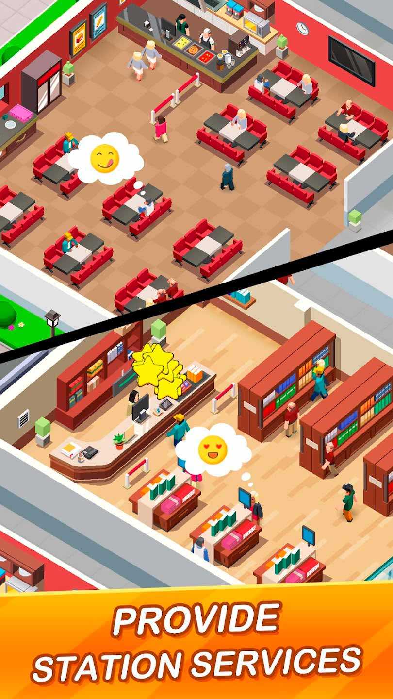 Idle Train Empire Tycoon Games – это увлекательная интерактивная игра про поезда, в которой вы сможете начать карьеру станционного смотрителя. Целый вокзал будет в вашем распоряжении, так что приготовьтесь к серьезной работе. Нужно скоординировать действия всех сотрудников, следить за качеством обслуживания, настраивать расписание поездов и заниматься множеством других немаловажных дел. Развивайте свою станцию, отстраивайте различные элементы, модернизируйте уже существующие системы и вы увидите, как ваш вокзал преображается на глазах.