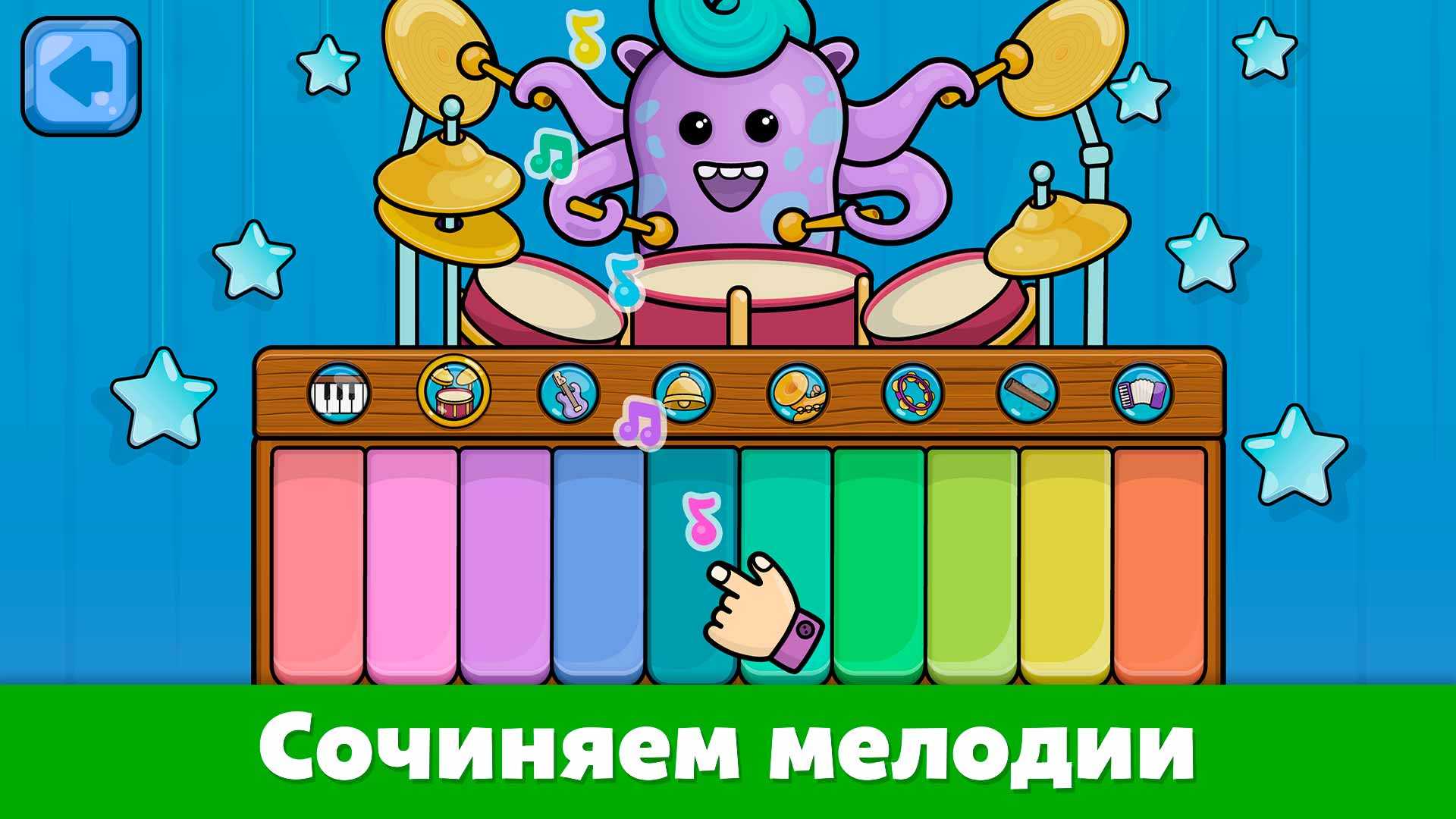 Детское пианино для малышей – это детская мобильная игра, предназначенная для возрастной группы 1-6 лет. Здесь вы найдете 5 разных интересных мини-игр в одной. Они помогут развить у малышей творческие способности, моторику, слух, умение концентрироваться и многие другие полезные навыки. К тому же данная игра подойдет для детей с определенными особенностями развития, к примеру, аутизмом. Ребята смогут поиграть на нескольких музыкальных инструментах, а красочная анимация не даст им отвлечься от процесса.
