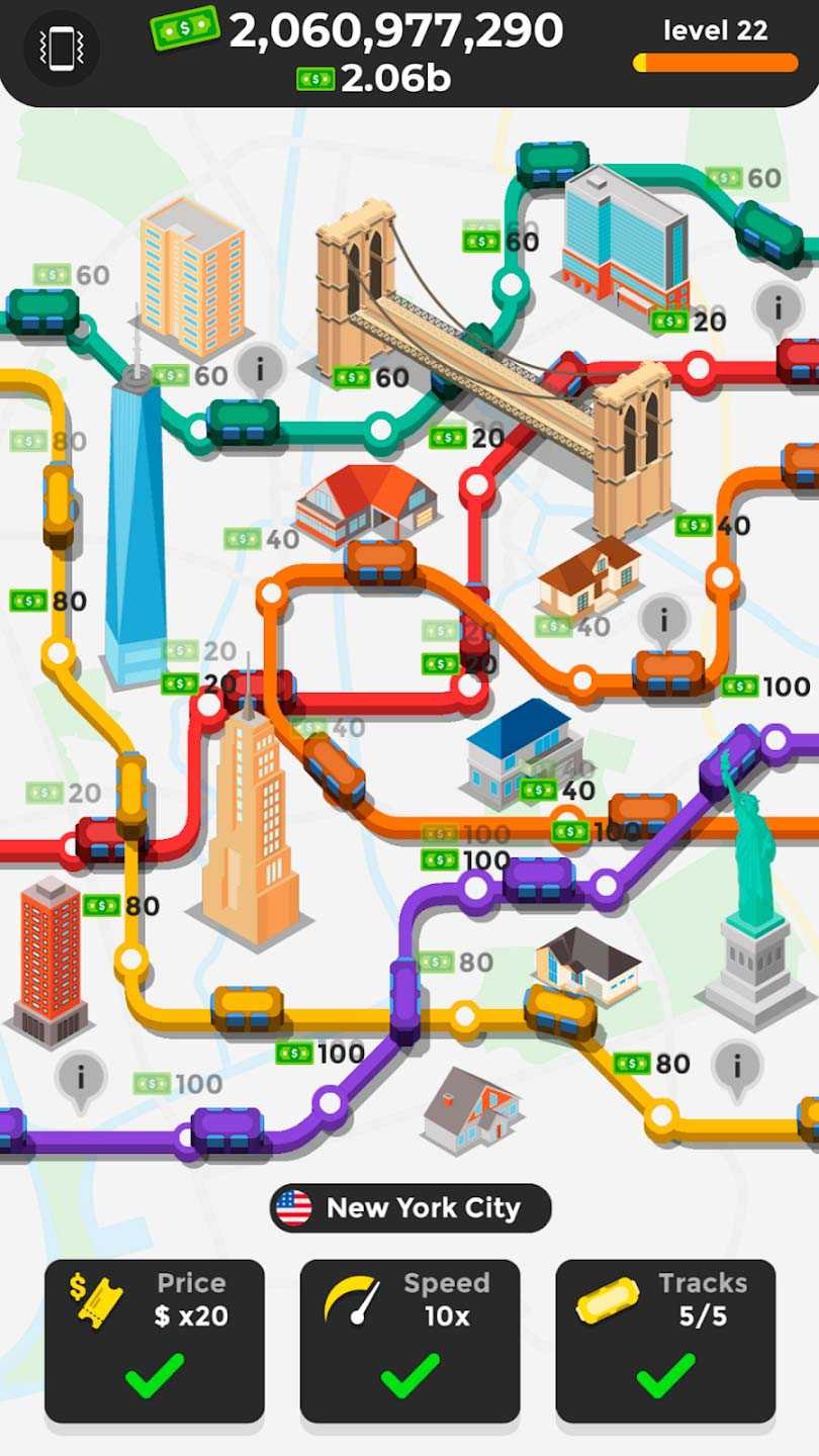 Subway Idle – это увлекательный симулятор метро для мобильных платформ, в котором вы возьмете под свой контроль обширную сеть подземных железных дорог и станций. Расширяйте сеть и создавайте новые станции, запускайте новые поезда и всячески улучшайте имеющуюся систему развязок. В игре представлено несколько городов с разными заданиями и испытаниями для вашего мастерства. Вы сможете выстроить собственное метро по своему желанию, развить его и создать удобную сеть, связывающую все важные городские районы.