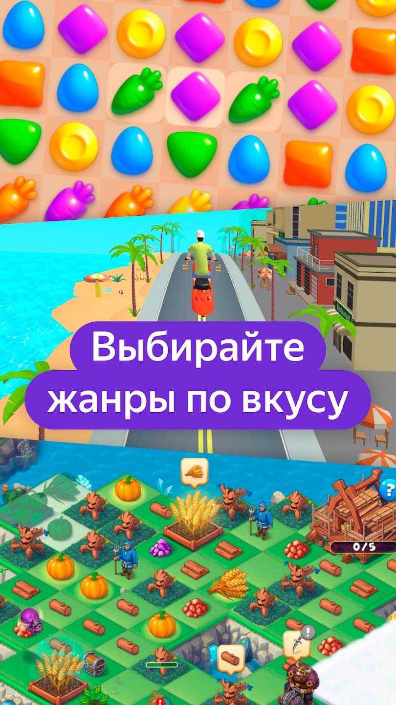 Яндекс Игры – это большая библиотека мобильных игр у вас на ладони. Здесь представлено множество увлекательных приложений на любой вкус и цвет. Выбирайте по жанрам или просто просматривайте предлагаемые игры, которые система выдает на основе ваших же запросов. Функция синхронизации позволяет играть на любом удобном устройстве, не теряя прогресс прохождения. С такой программой вы всегда найдете игру себе по душе.