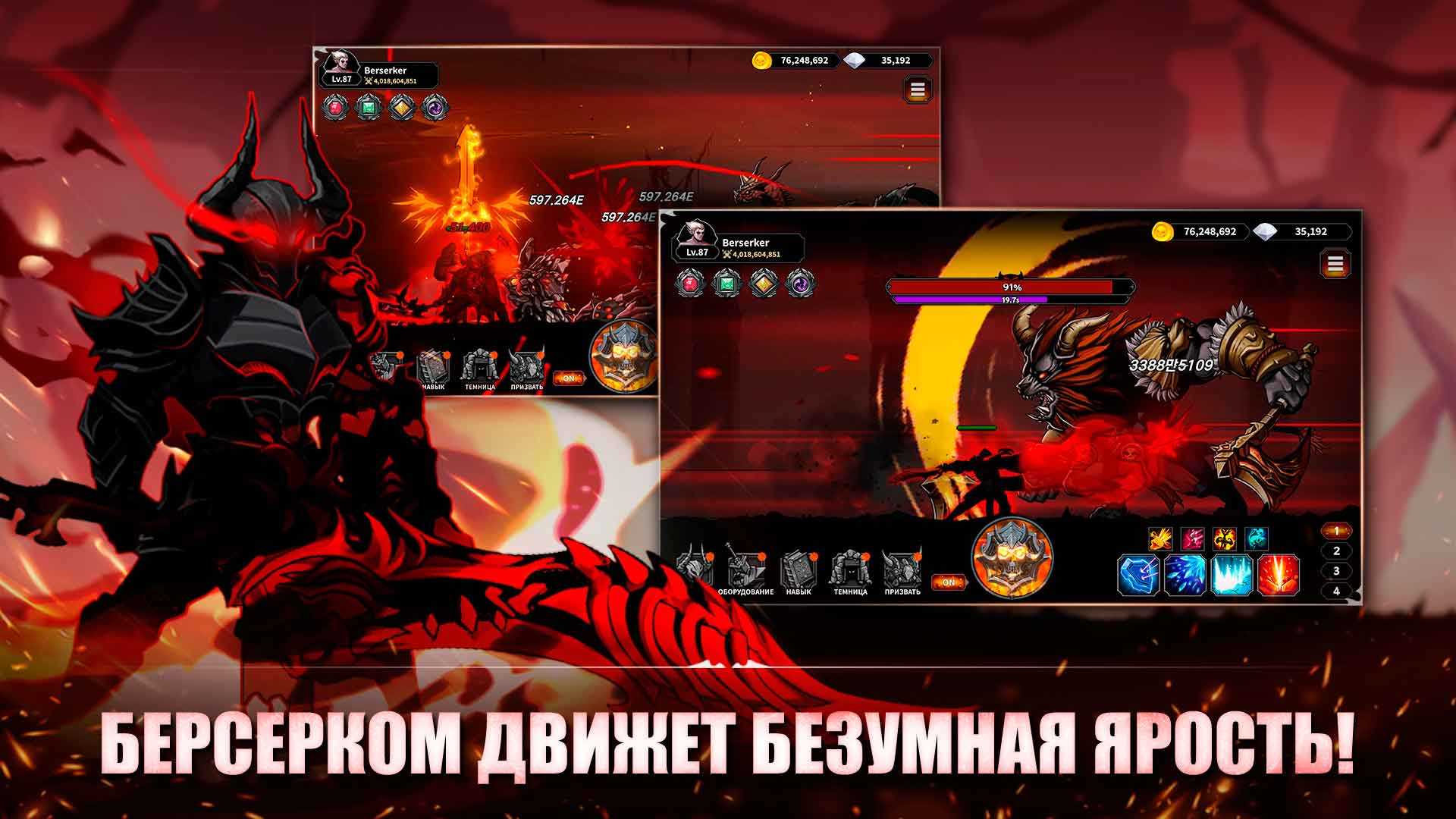 IDLE Berserker – это увлекательная ролевая игра для мобильных платформ, в которой вы сможете ощутить себя в роли полного ярости берсерка. Окунитесь в масштабные боевые действия, сражаясь с многочисленными врагами и побеждая их. Простой и понятный геймплей понравится всем ценителям жанра, за ним вы сможете с интересом провести долгие игровые часы. Широкая коллекция различных навыков и снаряжения открывают большие возможности для построения собственного боевого стиля. Интересный игровой контент, куча заданий, захватывающие испытания и многие другие преимущества приложения делают его отличным способом скоротать время и поднять настроение.