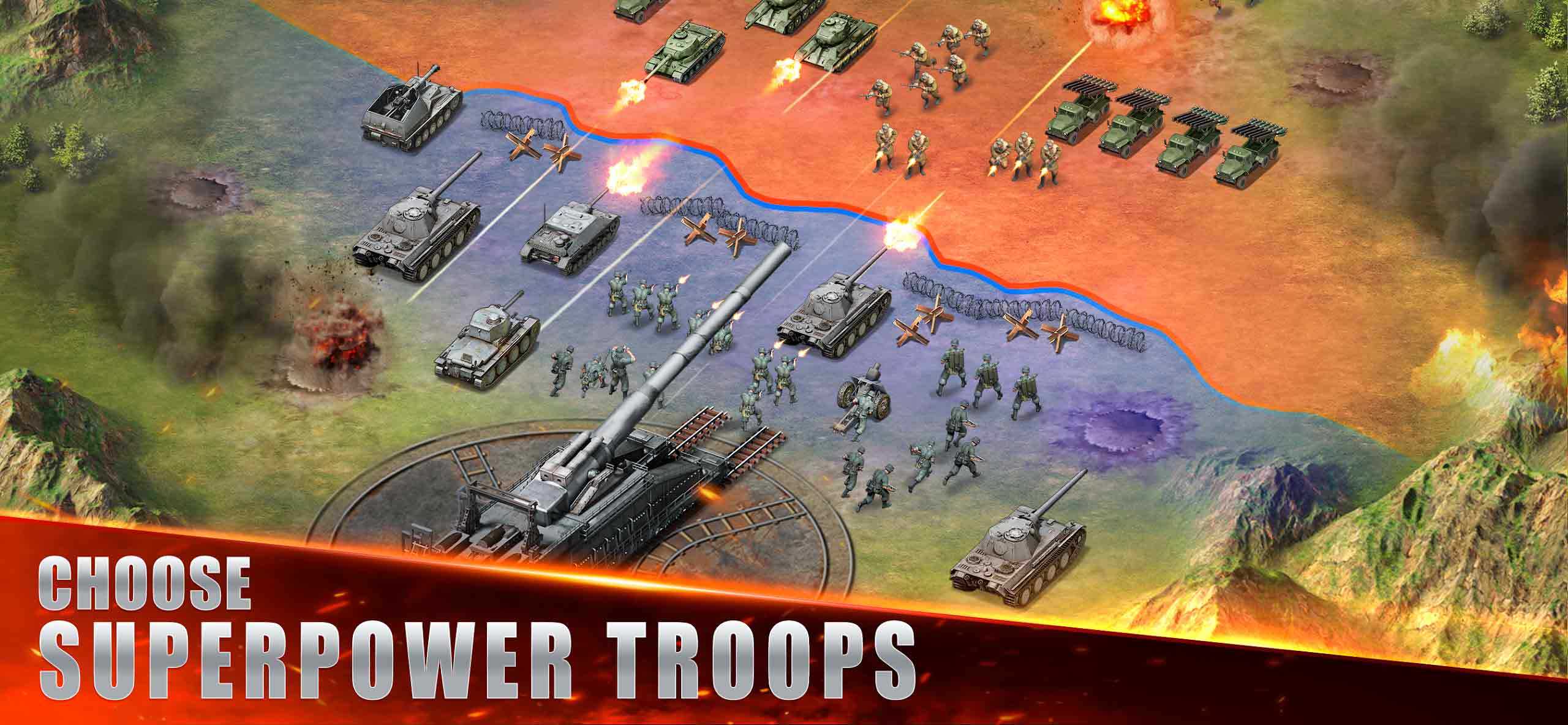 World War 2: Strategy Battle – это тактический военный симулятор, в котором вы погрузитесь в весьма реалистичные интерактивные сражения периода Второй мировой войны. Примите участие в полномасштабных боевых соревнованиях на суше, на воде и в воздухе. Пошаговые баталии в реальном времени помогут вам быстро научиться военному мастерству и стать великим командующим. Побеждайте противников, выполняйте боевые задачи и пишите собственную историю, где вы определите исход всей войны.