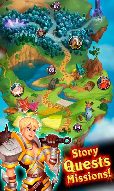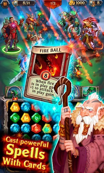 В своей колоде игрок сможет собрать около десятка карточек самых разнообразных характеристик и способностей. Используйте драгоценности, чтобы повысить уровень своих героев и уничтожить врага в хлам. Используйте крутые и невероятные комбинации из специальных атак и приемов. Вашим карточкам предстоит пройти очень длинную, но такую остросюжетную компанию и стать великим героем. Развивайтесь и увеличивайте боевой потенциал. Прогрессируйте по сюжетной истории и получайте для своей коллекции легендарных героев. Путешествуйте по фантастическим землям и выигрывайте новые достижения и награды. Почувствуйте это эпическое сочетание магии и карточек.